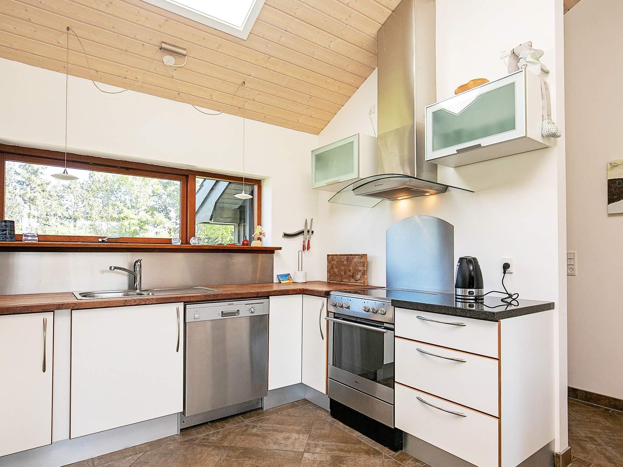 Huset er opført med fokus på kvalitet og komfort og byder på både spabad og sauna, så I kan forkæle jer selv efter en dag i naturen eller ved vandet. Det elegante køkken er udstyret med lækre materialer og ligger i åben forbindelse med den lyse og rummelige stue – her kan madlavningen nydes som en fælles oplevelse i samvær med familien.