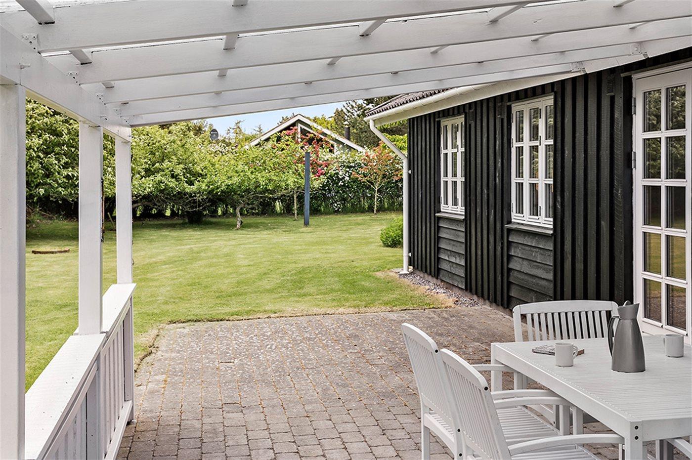 Dette dejlige sommerhus fremtræder lyst og indbydende og har en god atmosfære. Huset ligger på en lukket vej kun 200 m fra stranden. Til huset hører såvel åben som overdækket terrasse med havemøbler.