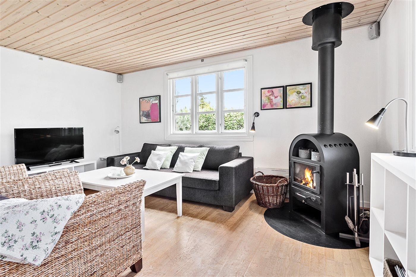 Lyst og indbydende sommerhus med spa, brændeovn og tæt på stranden i Hummingen.