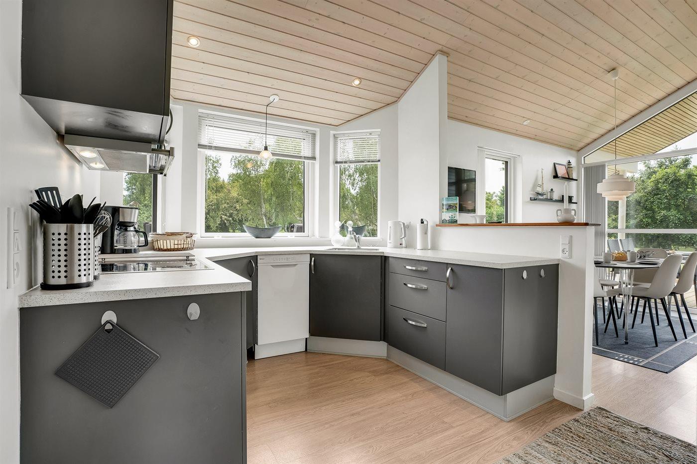 Køkkenet er udstyret med 1 køleskab. Der er 4 keramiske kogeplader, varmluftovn samt opvaskemaskine.
