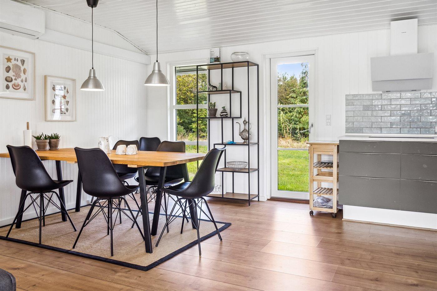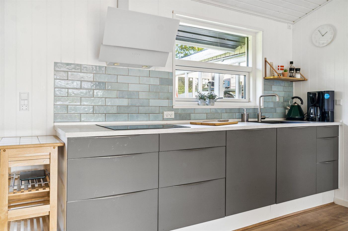 Køkkenet er udstyret med 1 køleskab. Der er 4 induktionskogeplader, varmluftovn, mikrobølgeovn samt opvaskemaskine.