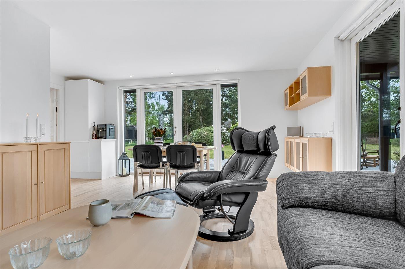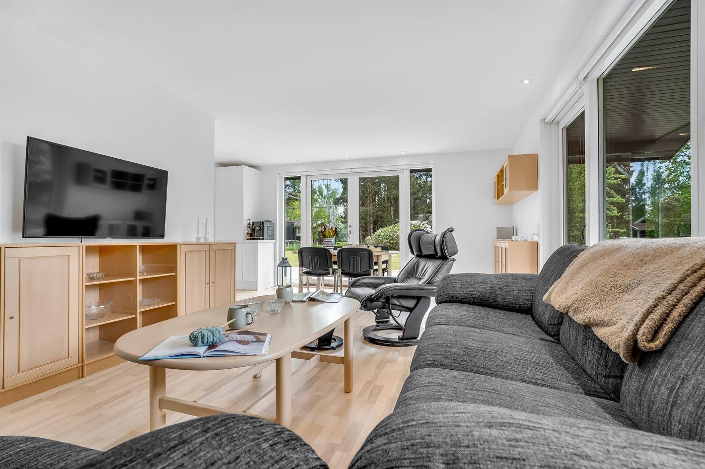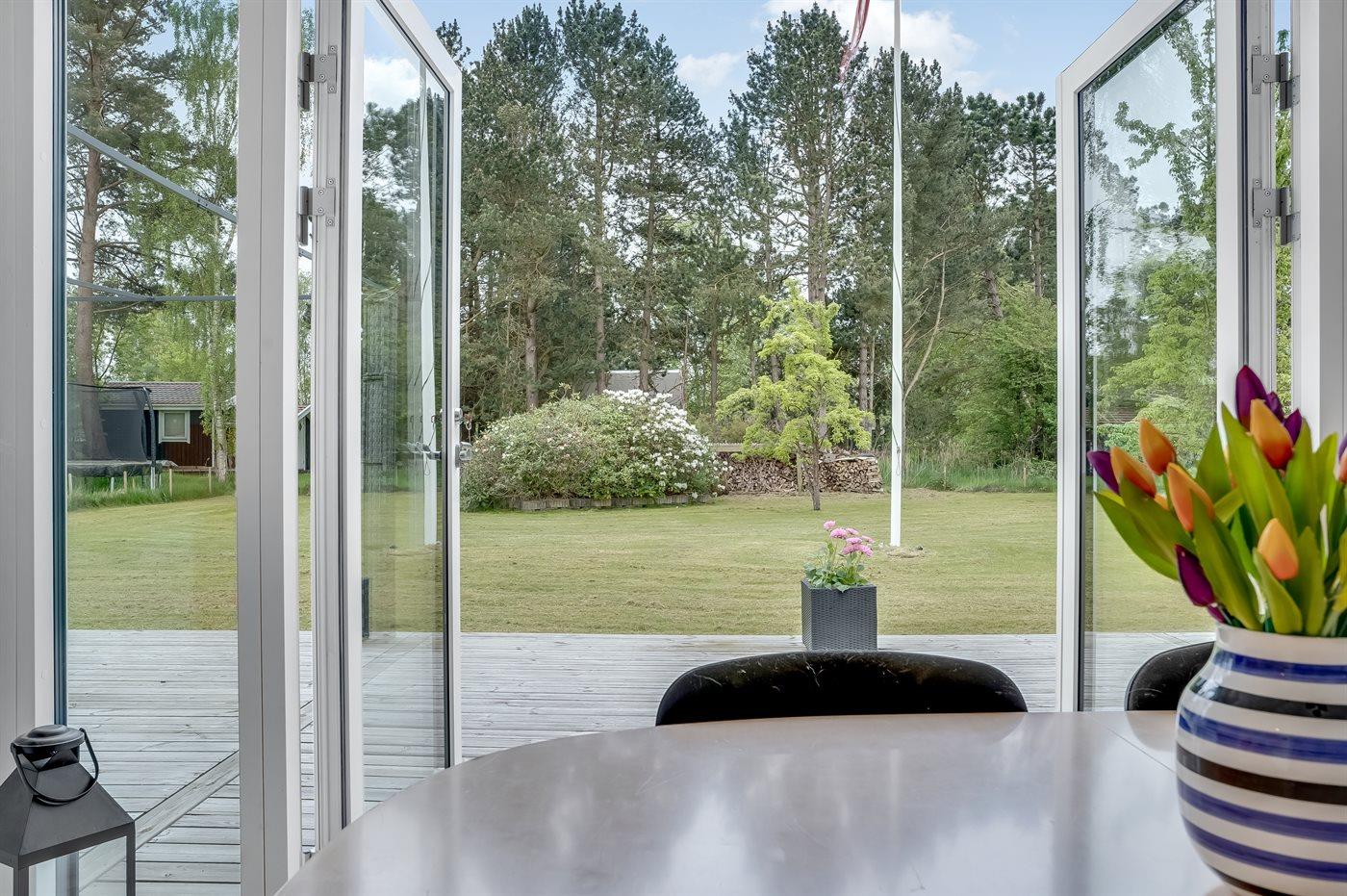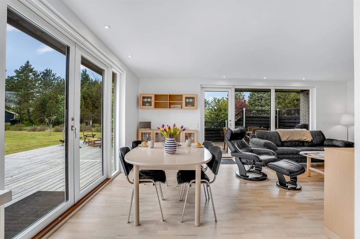 Velkommen til dette indbydende feriehus med en fin vinkelterrasse i naturskønne omgivelser med et rigt dyreliv. Her vil I uden tvivl føle jer hjemme. Nyd tiltrængt kvalitetstid, når I laver en madlavningsdyst, bager sammen med børnene, slapper af i sofaen til en underholdende film om aftenen eller spiller ved spisebordet.