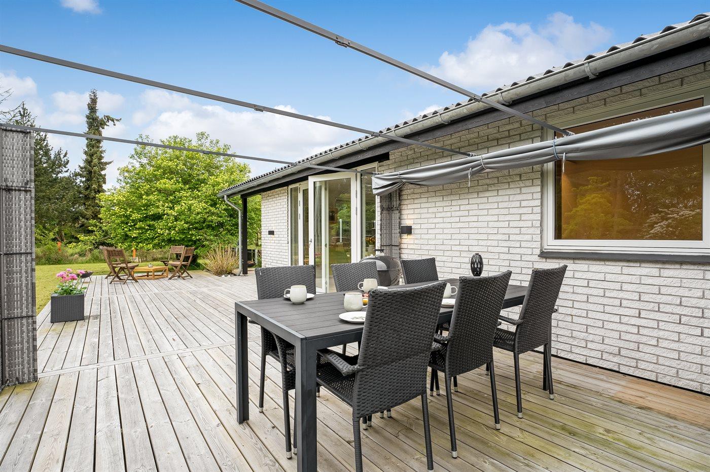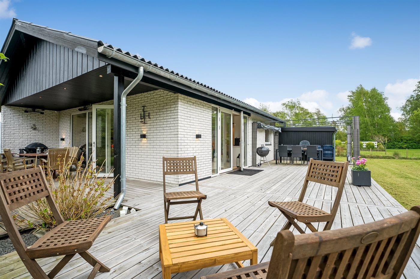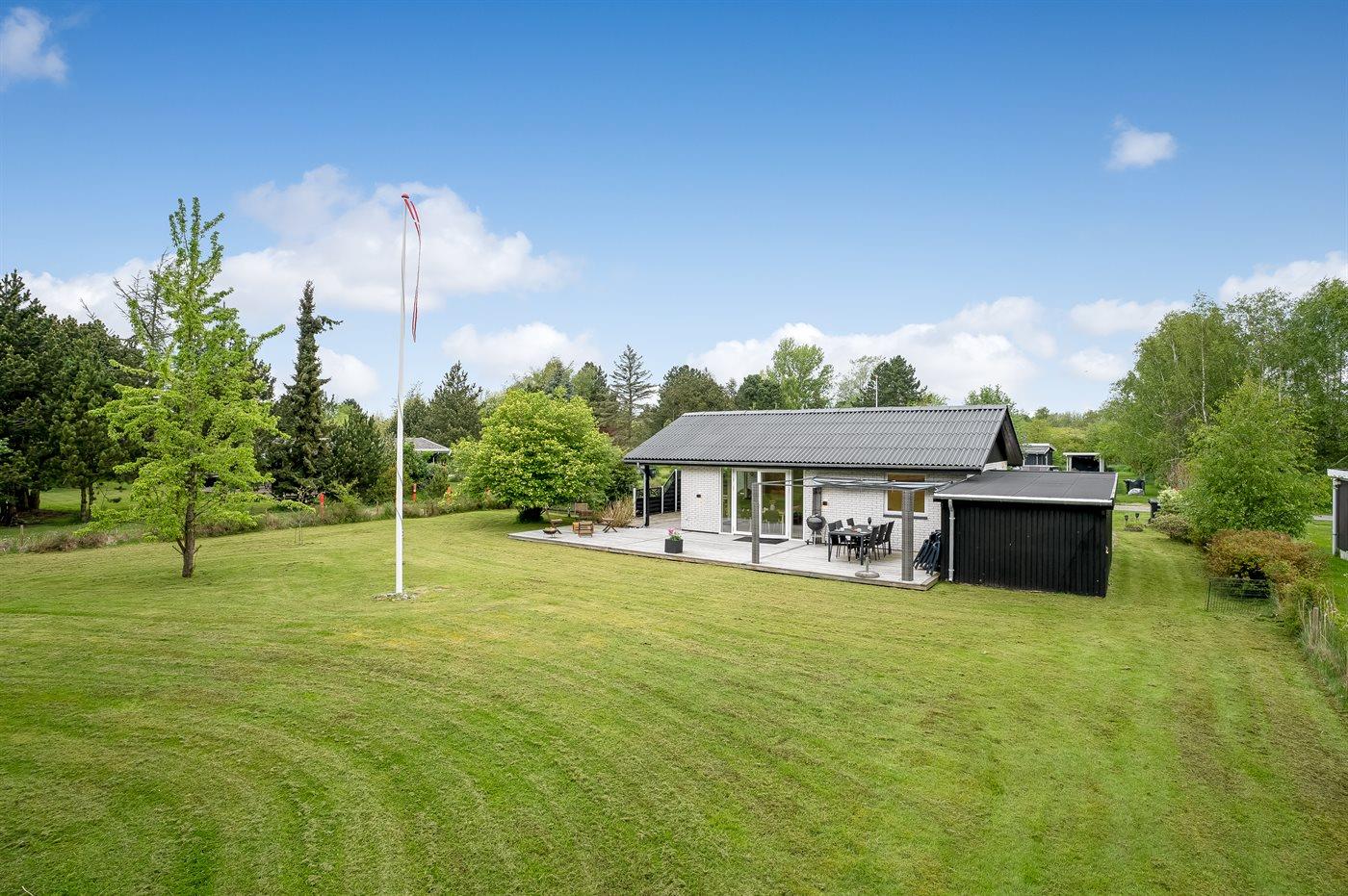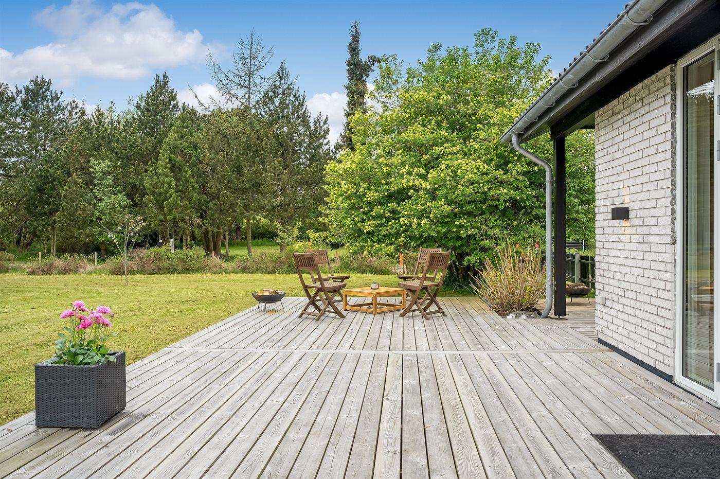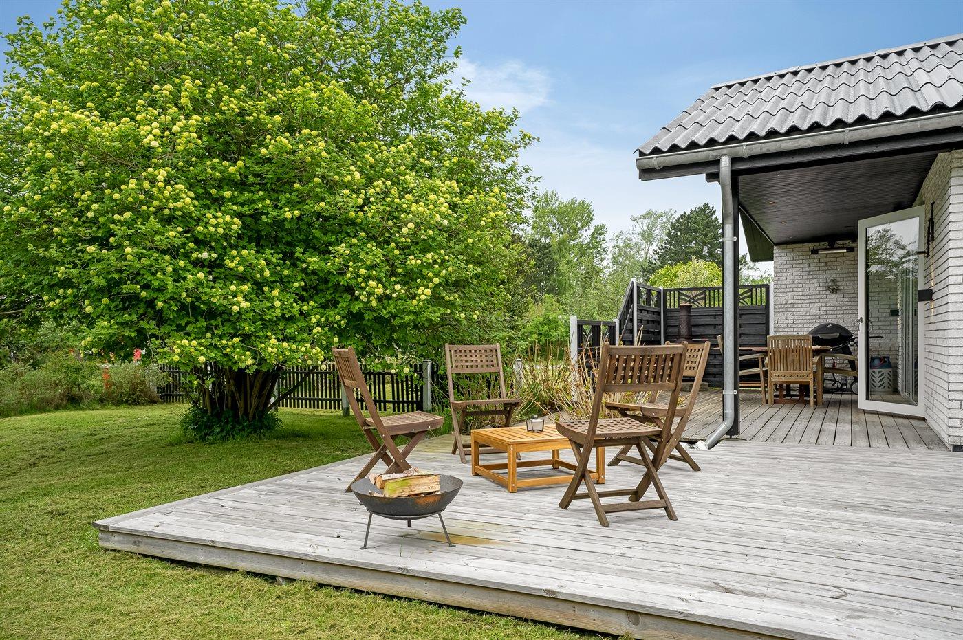 I haven er der lagt op til hygge! På den store terrasse kan I ugenert nyde solen og alle dagens måltider. Lad børnene lege i haven, mens I griller maden færdig på terrassen. Gå til den dejlige strand, som er en fryd på alle tider af året.