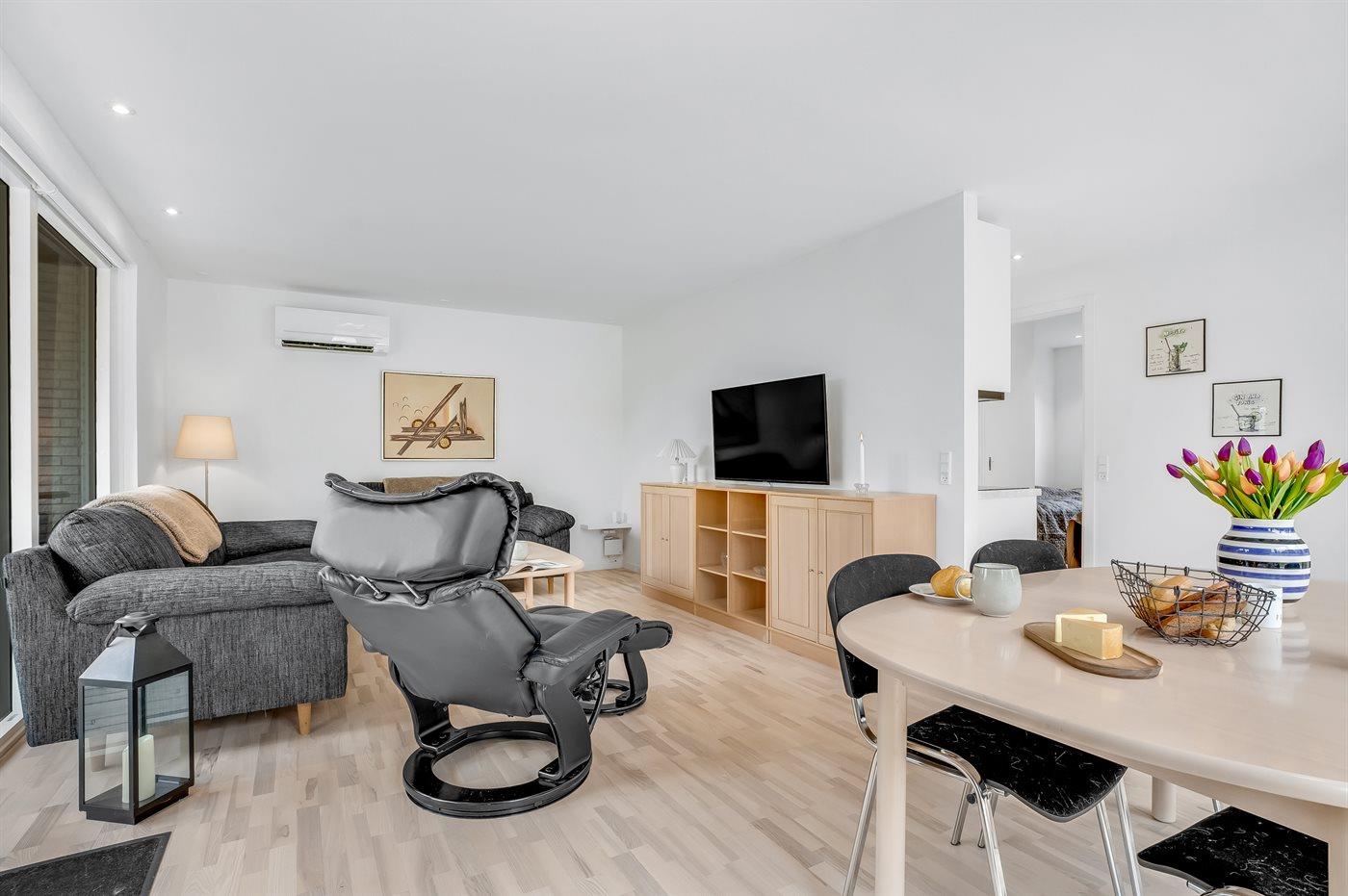 I ferieboligen findes 1 Smart-TV. Ingen TV-kanaler - kun streaming. Der er trådløst internet til rådighed.