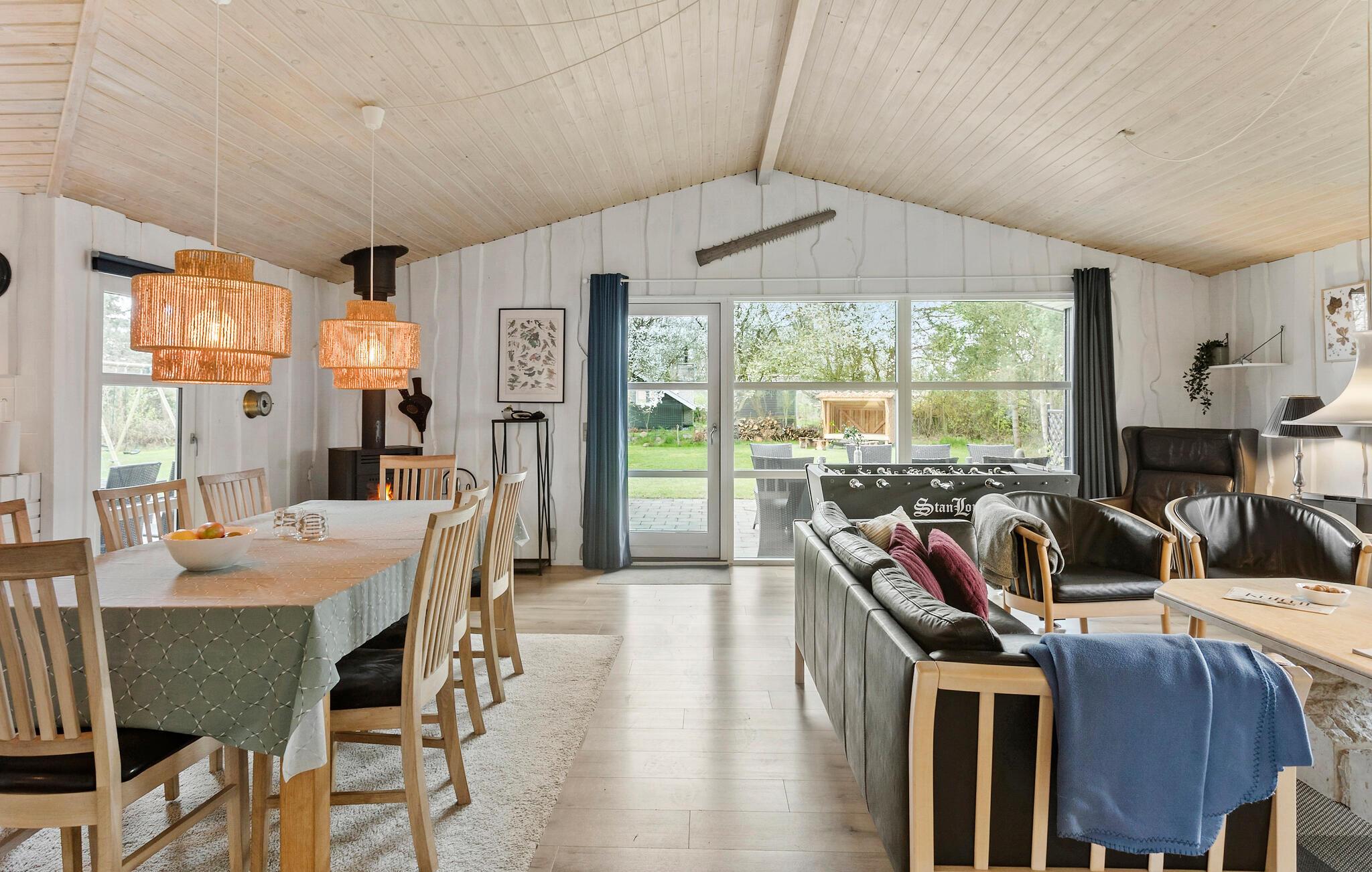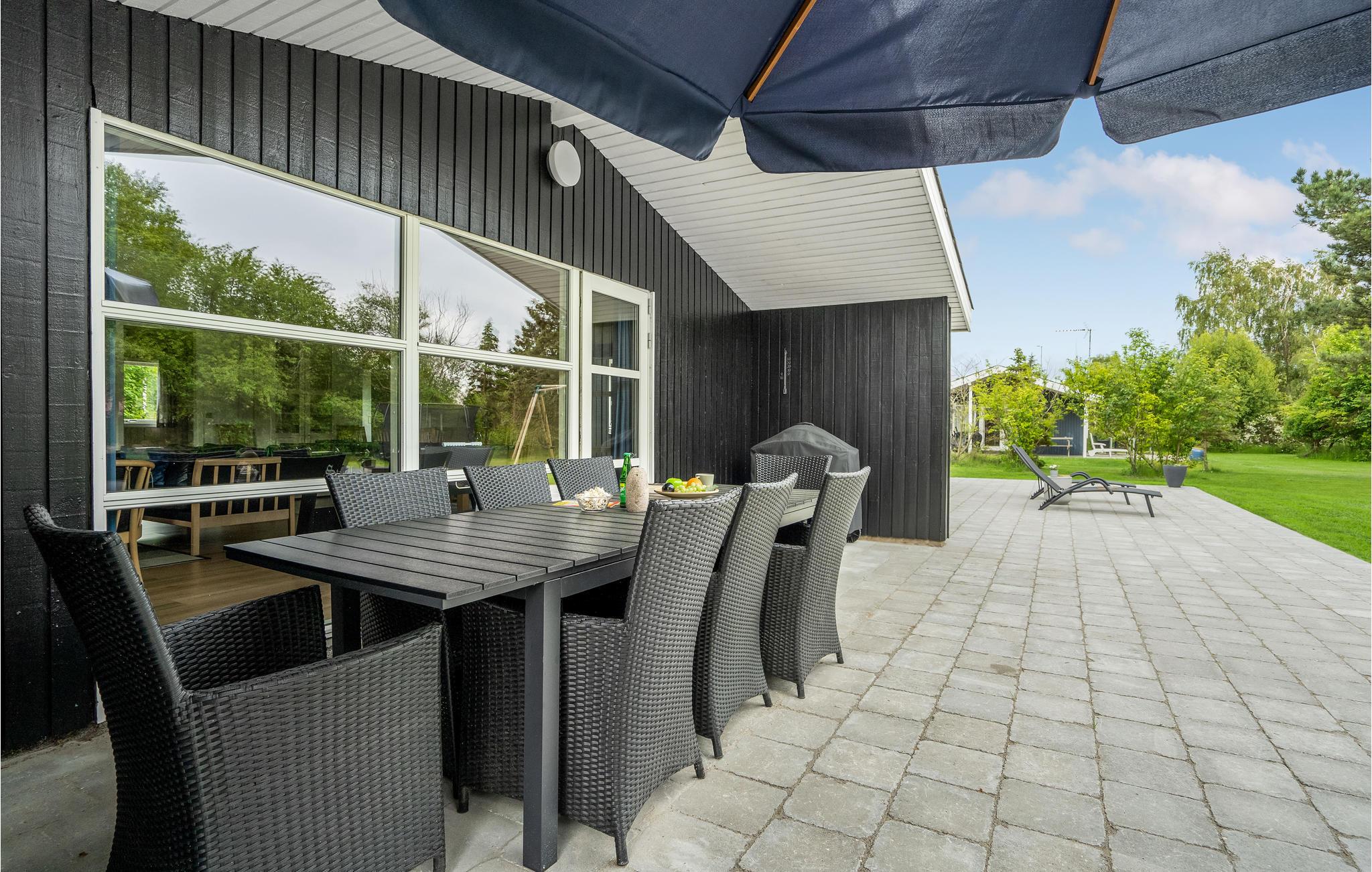 Kun fem minutters gang fra vandet, ligger dette lækre velindrettede og hyggelige luksushus af træ. Den meget store stue er indrettet med mange gode møbler, bordfodbold og brætspil, og køkkenet er veludstyret med alle tekniske hjælpemidler. I soveværelserne, der alle har dobbeltsenge, venter er god nattesøvn. I det ene af de to badeværelser står det seks pers. spabad, hvor I gennem de store glaspartier kan nyde årstiden udenfor. Her er der også mulighed for at gå i sauna.