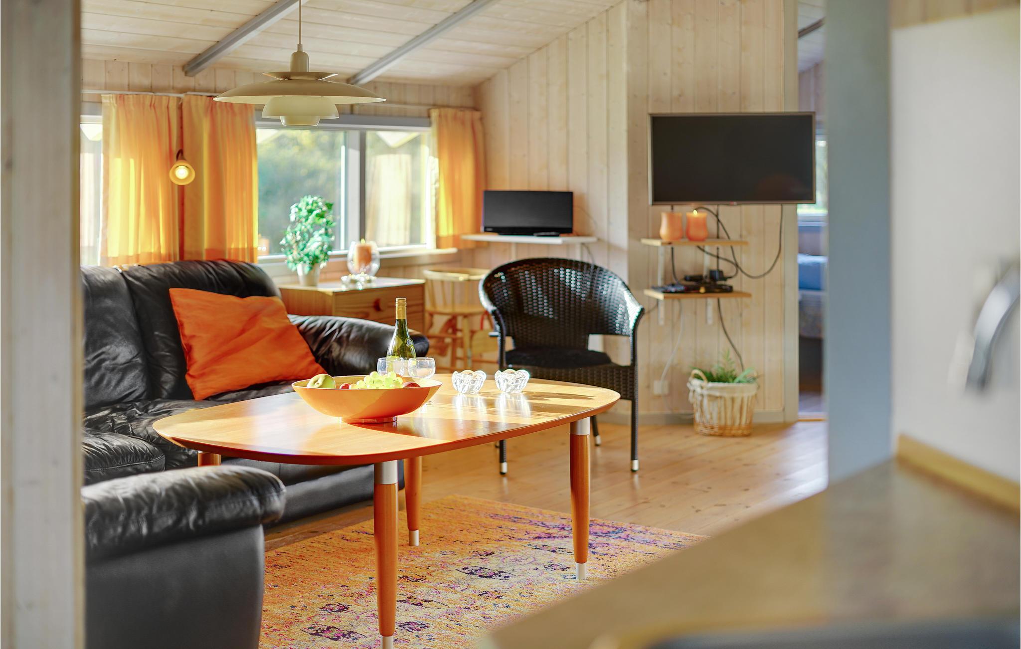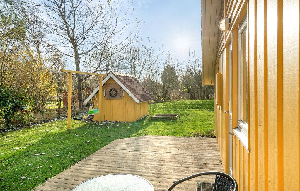 Moderne sommerhus af træ, på en åben grund med plads til leg og boldspil og en god udsigt. Terrassen er dejligt afskærmet for vind og delvist overdækket skulle der komme en byge forbi. Den store stue med pæne møbler er dejlig at sidde i efter en lang dag i det fri, fuld af mange aktiviteter. Denne del af Danmark har meget at byde på, nogle af landets bedste strande, det friske rene hav, Knuthenborg Safaripark, Møns Klint med Geocenter og Middelaldercenteret hvor I kan opleve drabelige slag mellem riddere.