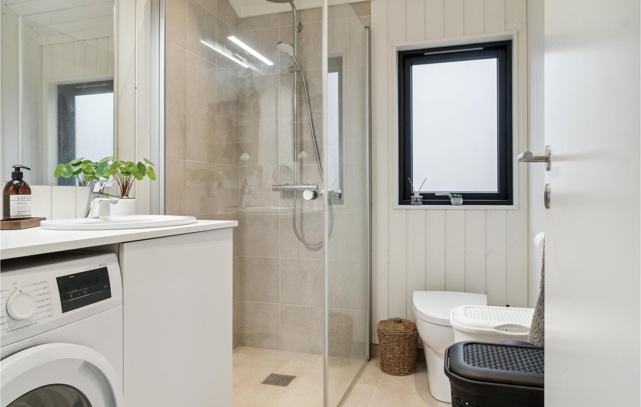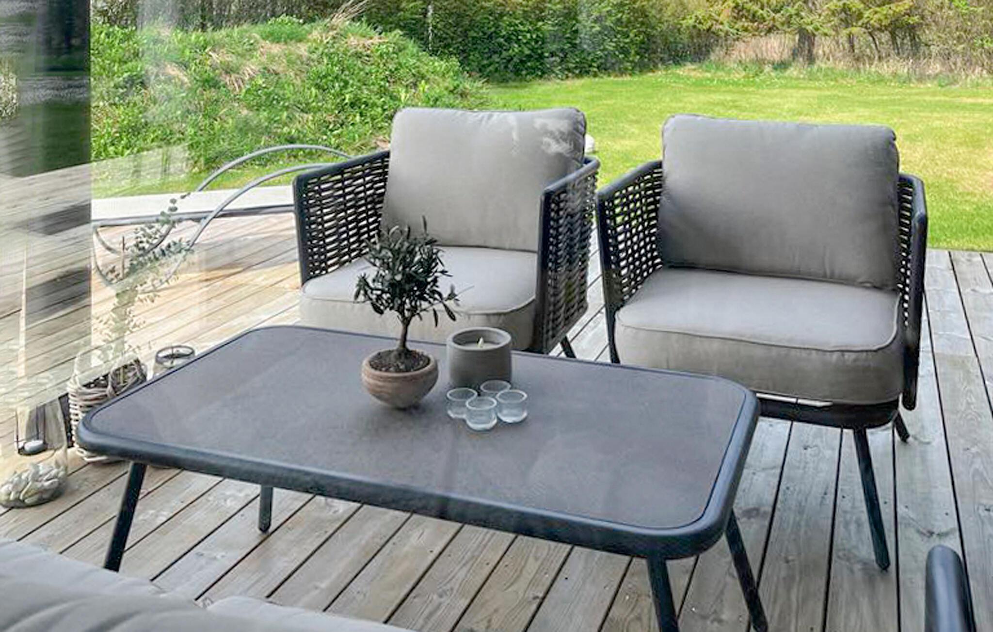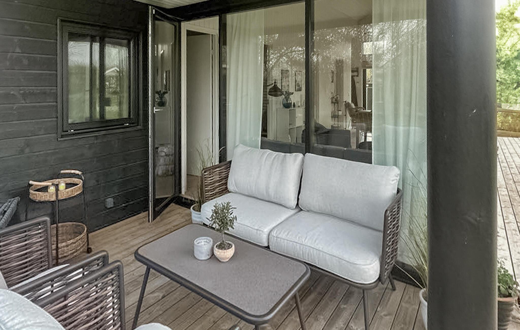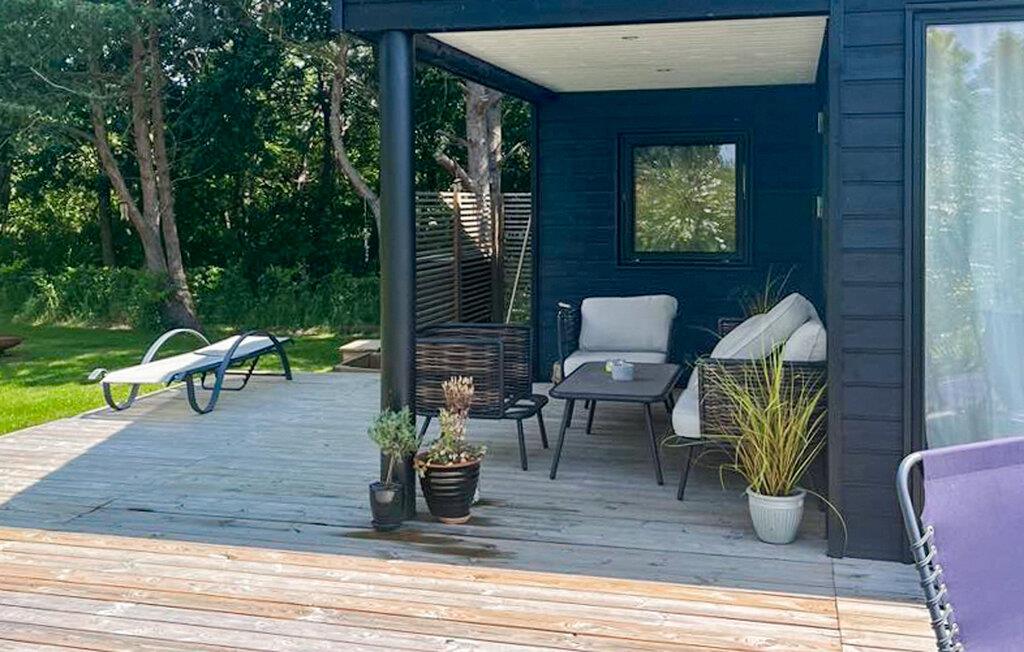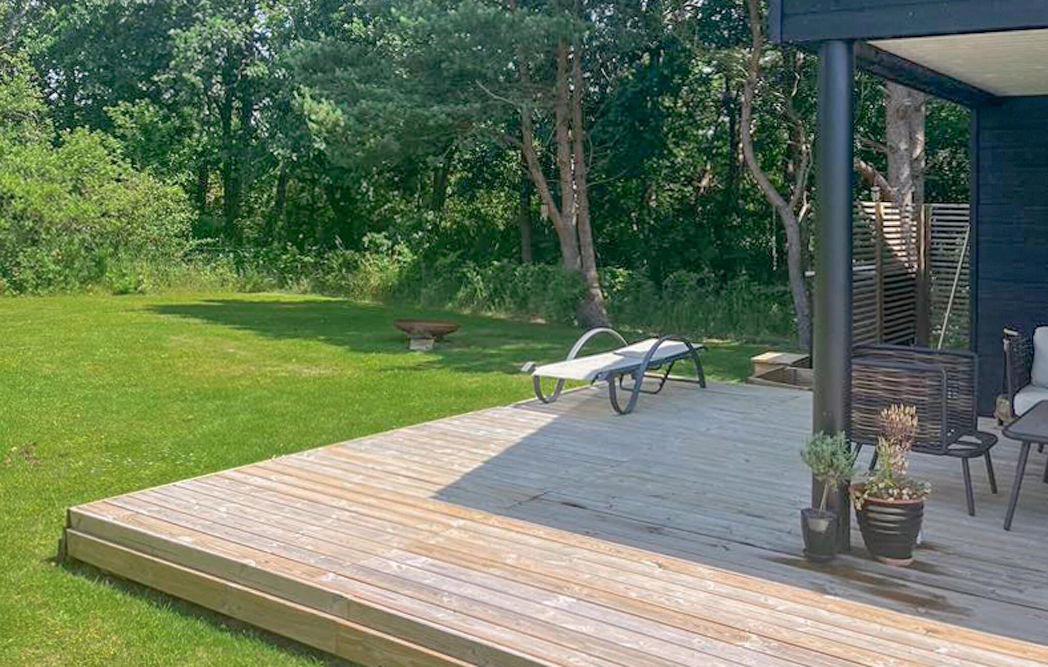 Udenfor finder I den delvist overdækkede terrasse, så I kan selv bestemme, om I foretrækker sol eller skygge i løbet af dagen. Når solen bager, og I er tæt på at overophede, kan I køle af i den udendørs bruser og gøre klar til et lækkert grillmåltid om aftenen, mens I lægger planer for de kommende dage.
