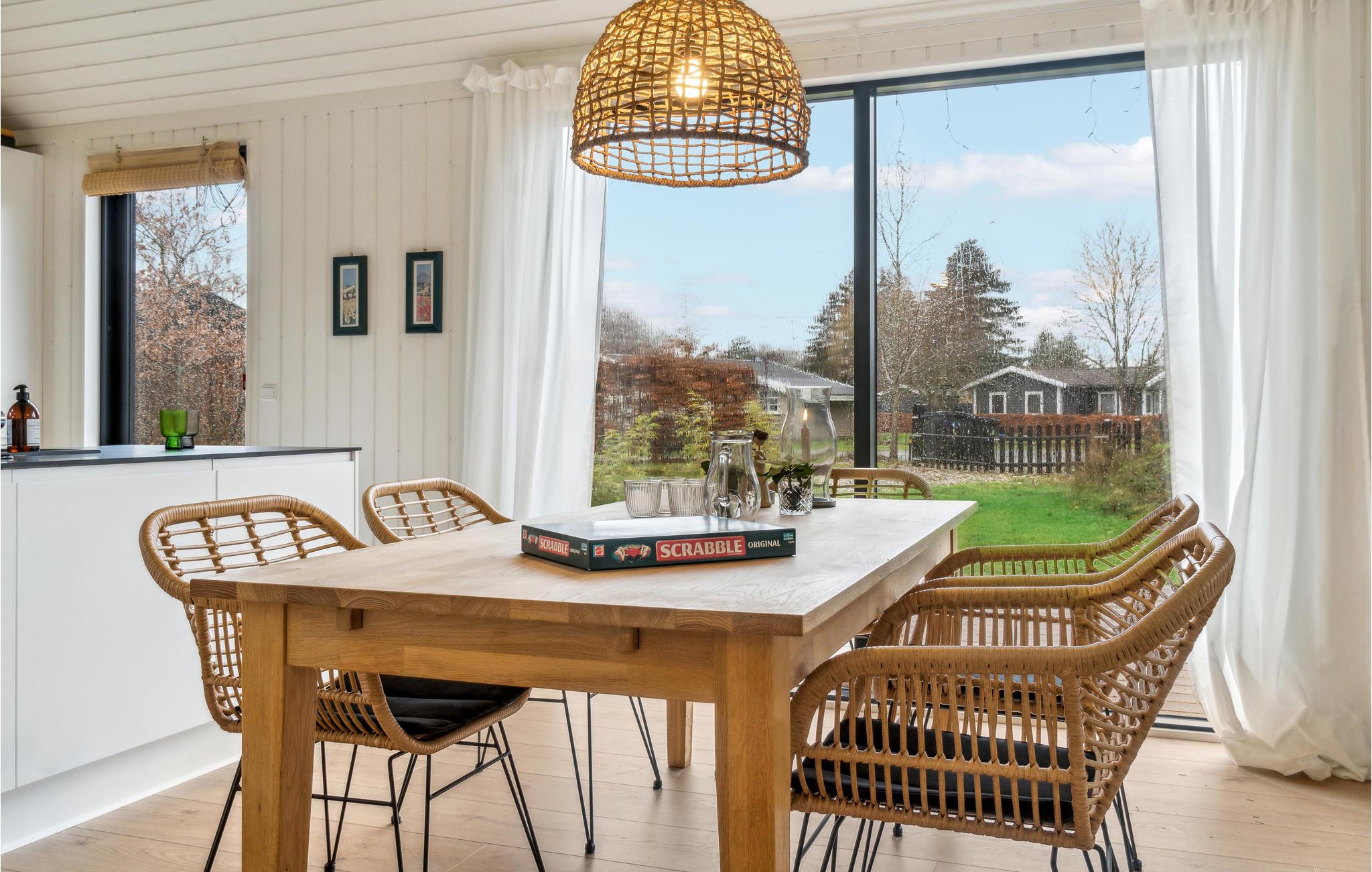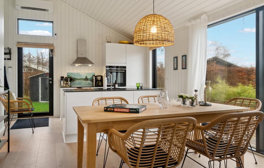 Tæt på Hummingen Strand finder I dette dejlige hus, der fremstår både varmt og moderne, og hvor der er lagt op til en herlig ferie med familien. Huset har alt, hvad I behøver til nogle rolige dage uden de store bekymringer. Soveværelserne er komfortable, og fællesarealerne prydes af det åbne opholdsrum, hvor I kan se frem til mange timers hygge og sjov i hinandens selskab. I det veludstyrede køkken kan I gøre madlavningen til et fornøjeligt fællesprojekt, og i den lyse stue kan I udfordre hinanden med jeres medbragte brætspil eller se en god film sammen med udsigt til haven.
