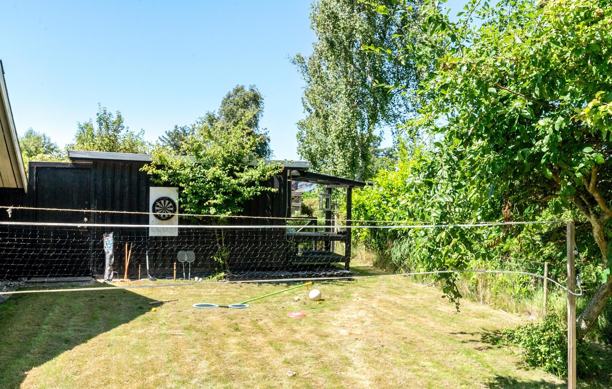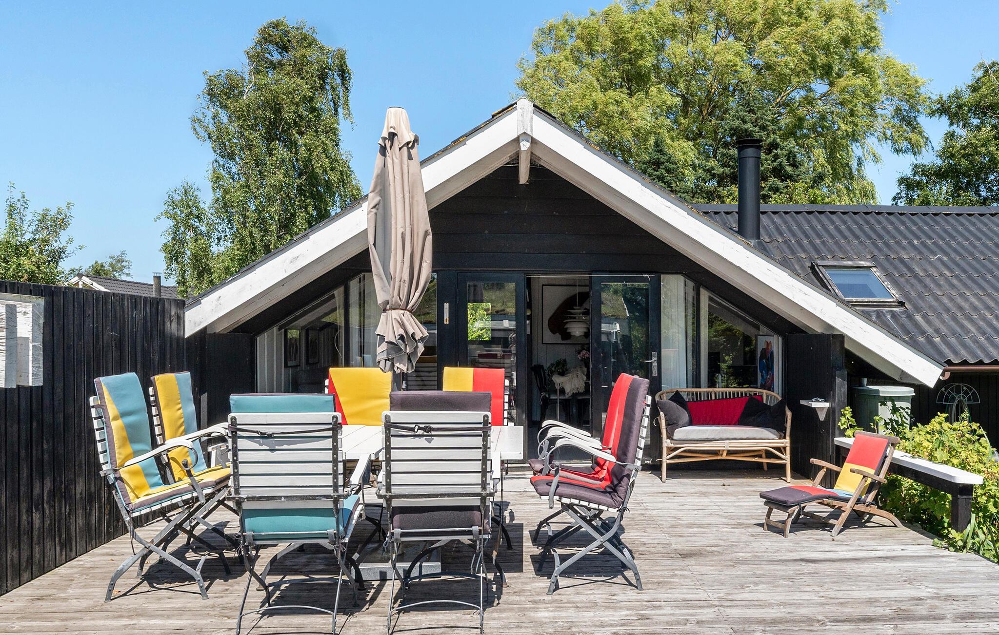 På den store solterrasse kan I rigtig nyde sommerdagene i de farverige havemøbler. Tænd op i bålfadet om aftenen og lyt til de knitrende flammer, mens mørket falder på. Hvis I trænger til en rolig stund, er der en skøn fred og ro på den lille udsigtsplatform med udsigt over haven. Sæt jer her og hold øje med fuglelivet eller nyd en drink oven på dagens program. Omkring huset er der masser af plads til leg, læsning eller en lille pause i solen. På den overdækkede terrasse falder lyset ind gennem taget og gør det dejlig lunt på en forårs- eller efterårsdag.