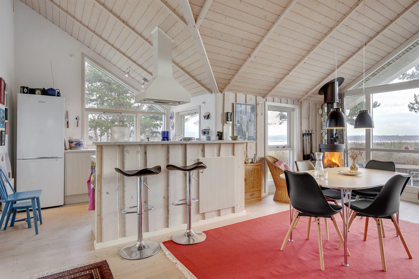 Huset er indrettet med stue, spiseplads og stue ud i et og er ideelt for hyggeligt samvær med familie og venner. Alkoven i stuen og hemsen indbyder til hygge og afslapning. Der er 2 gode soveværelser samt førnævnte alkove. Badeværelset er med bruseniche, gulvvarme og der er også vaskemaskine. Det gode vejr kan nydes på de store terrasseområder, hvor en del er overdækket eller i haven som giver rig mulighed for leg. Fra grunden fører en sti med trappetrin ned til stranden. Bemærk, at stien ikke er egnet for gangbesværede.