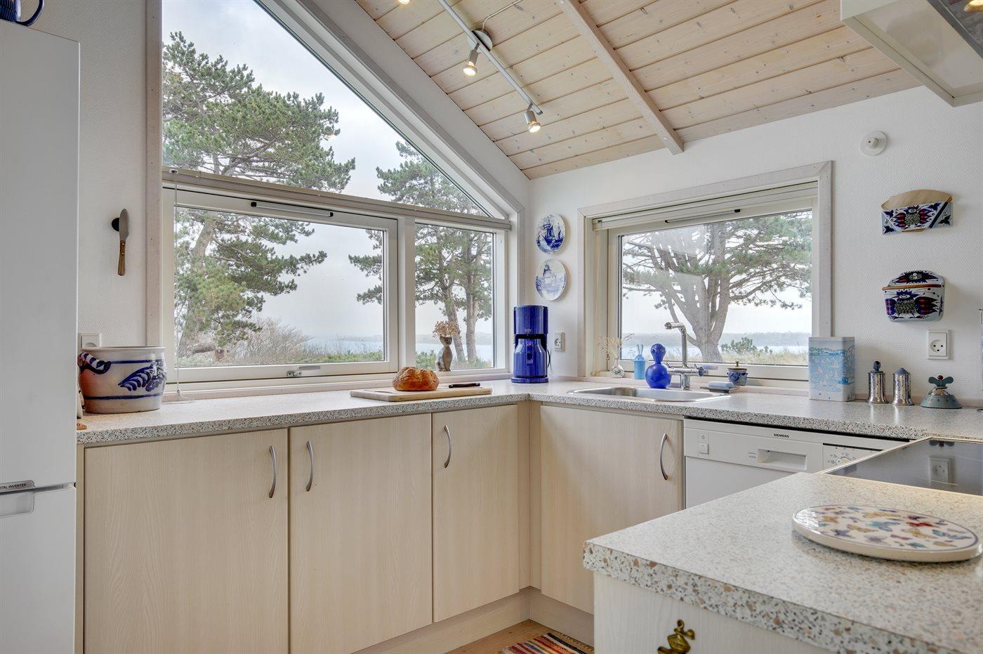 Køkkenet er udstyret med 1 køleskab. Der er 4 keramiske kogeplader, varmluftovn samt opvaskemaskine.