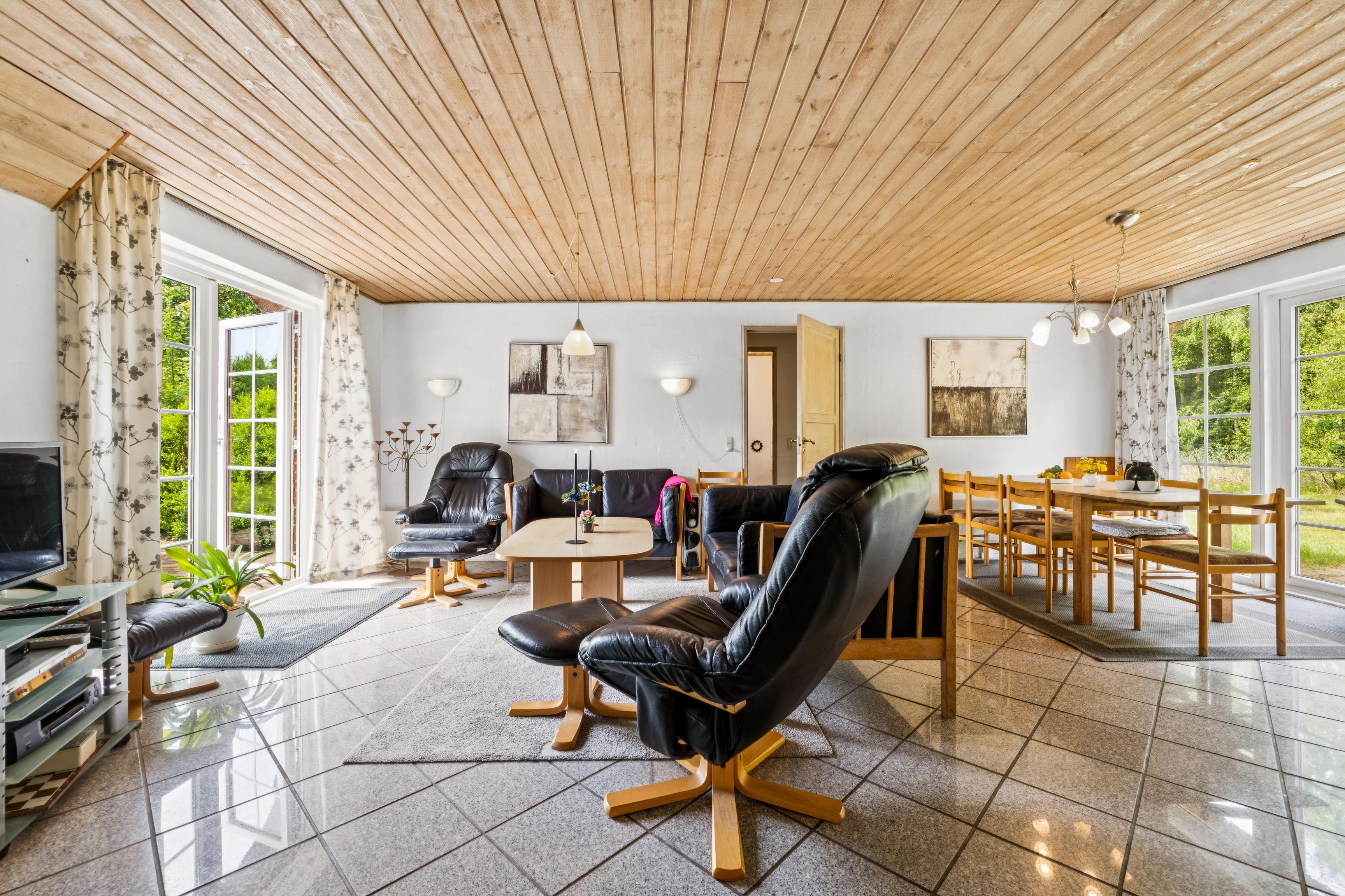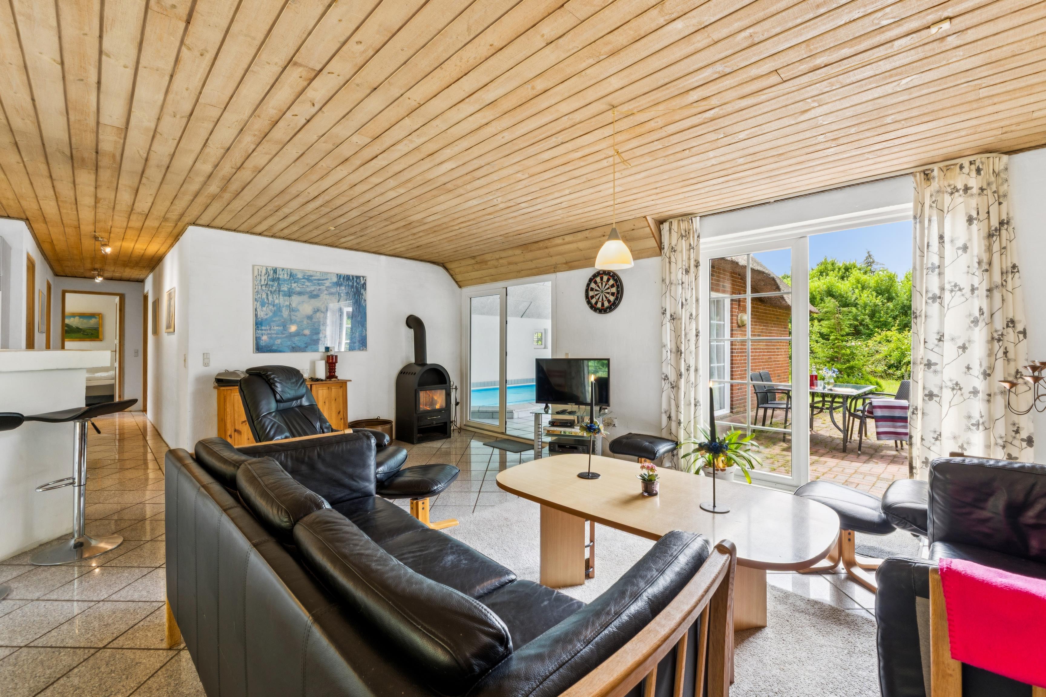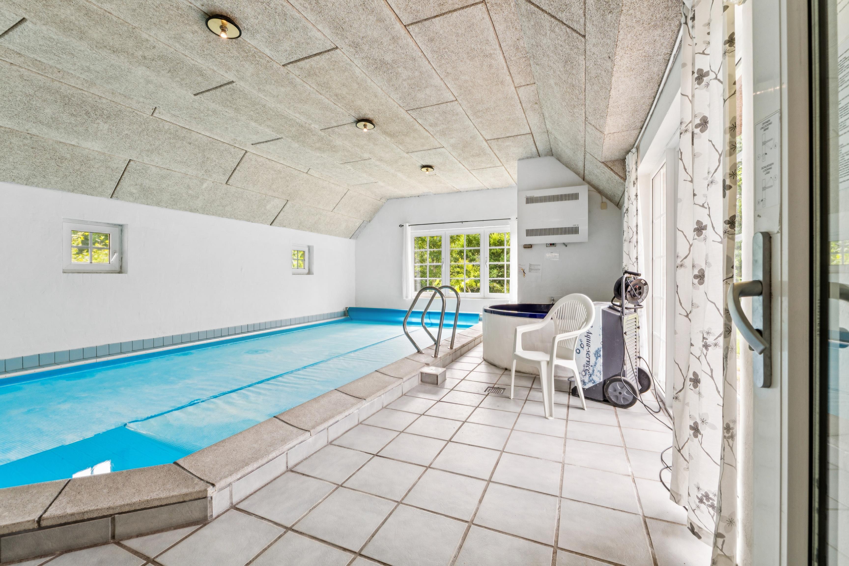 Rummeligt sommerhus med indendørs pool, spabad og sauna nær Vester Husby strand og rolige omgivelser.