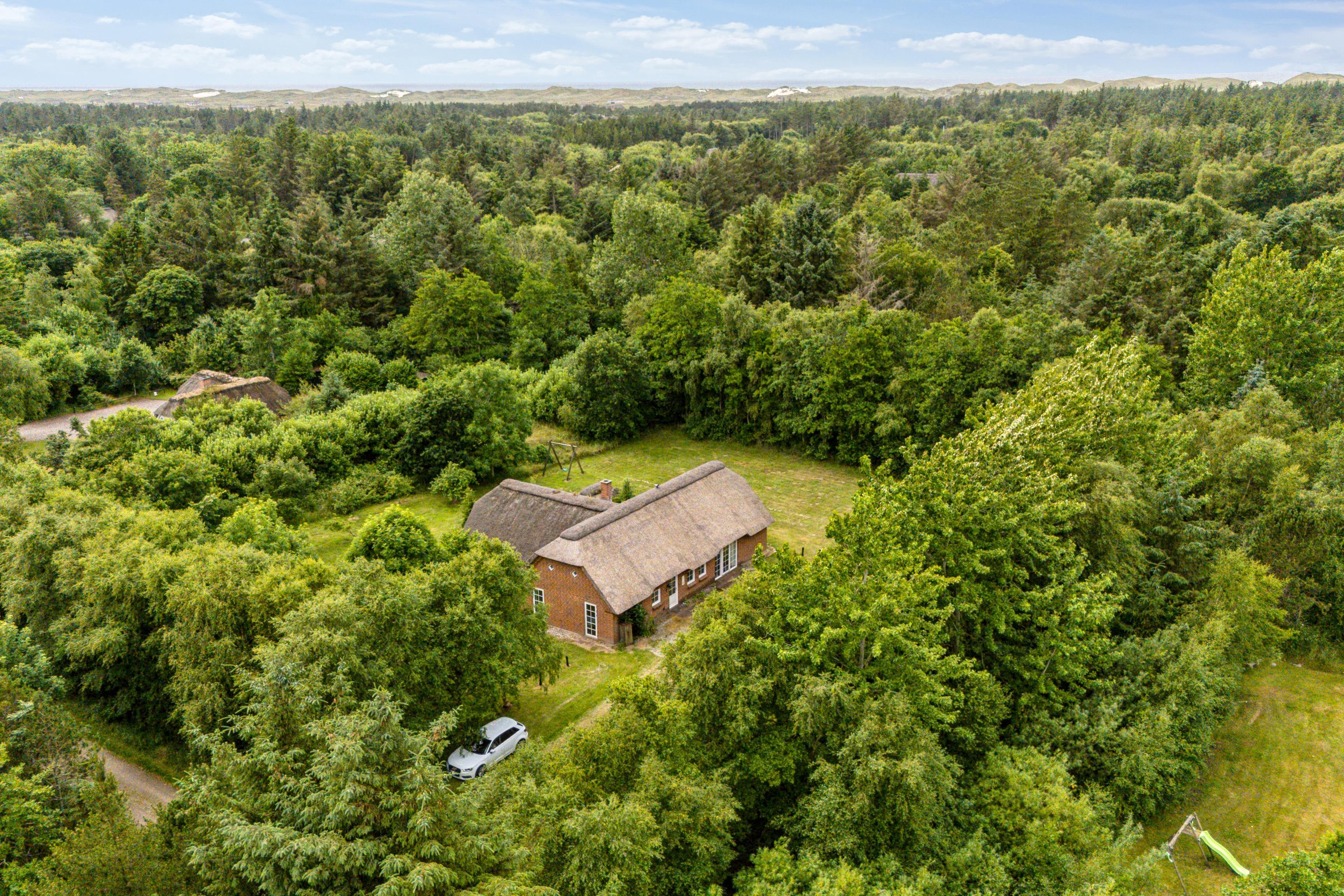 Grunden, som sommerhuset ligger på, er 5000 m² og består af naturgrund, og afstanden til stranden er kun 2500 meter. Nærmeste indkøbsmulighed ligger cirka 2 km væk, og golfbanen er omkring 17 km fra huset. Til huset hører en terrasse på 30 m², samt gynge og parkeringsplads.