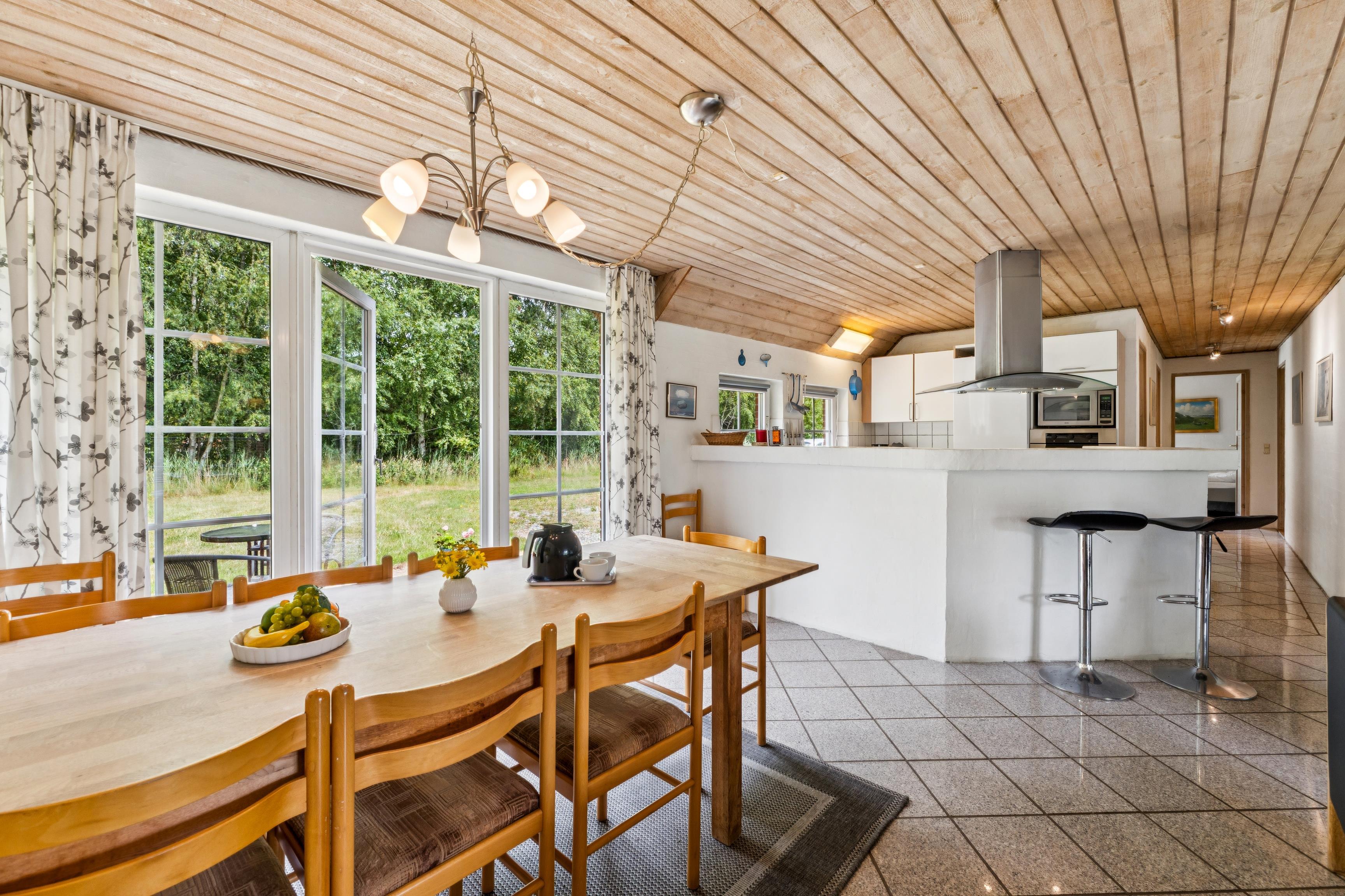 Sommerhuset har plads til 8 voksne plus et barn under 3 år. Boligen er 175 m² og blev opført i 1995, med en større renovering foretaget i 2020. Det er tilladt at medbringe op til 2 hunde. Huset er udstyret med en energibesparende varmepumpe samt vaskemaskine og tørretumbler. Der er desuden en fryser med en kapacitet på 80 liter og en hyggelig brændeovn. Til de mindste gæster findes en barnestol.