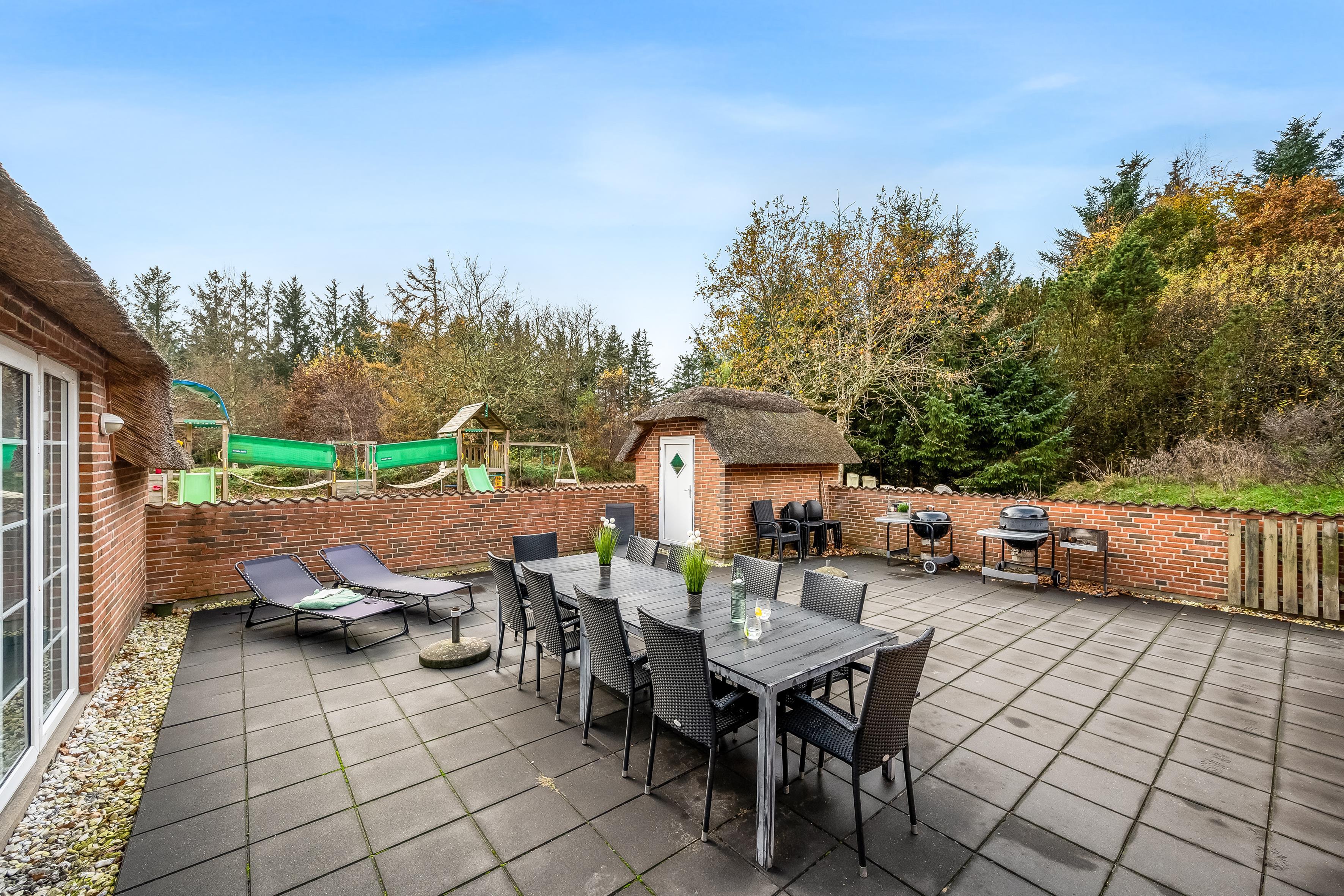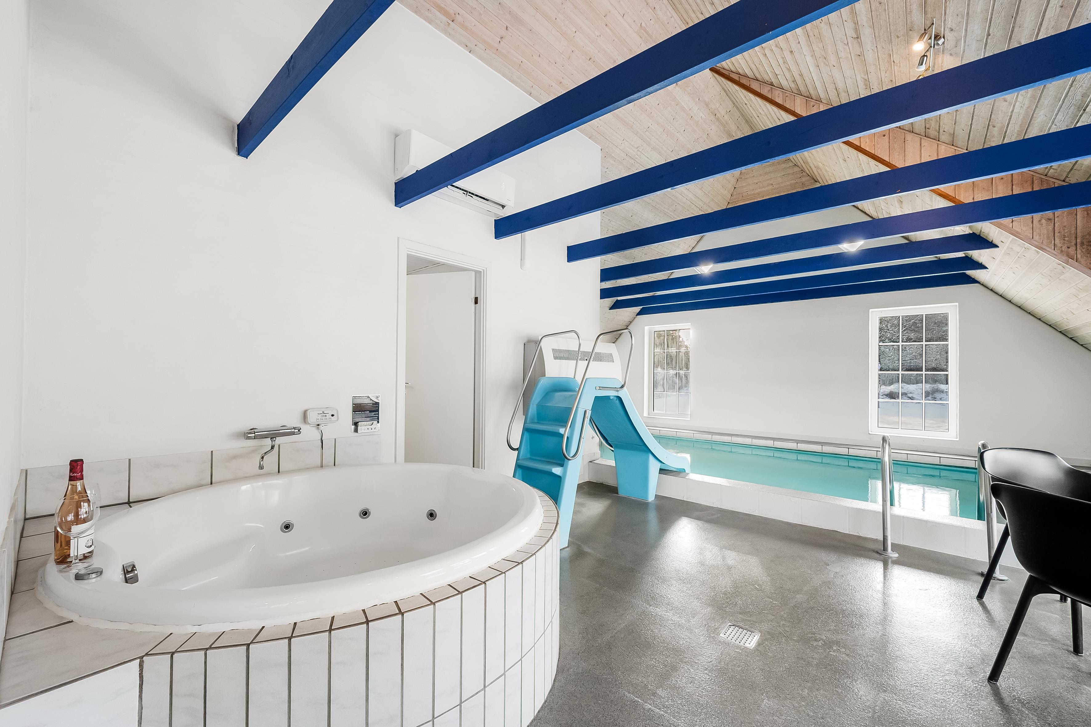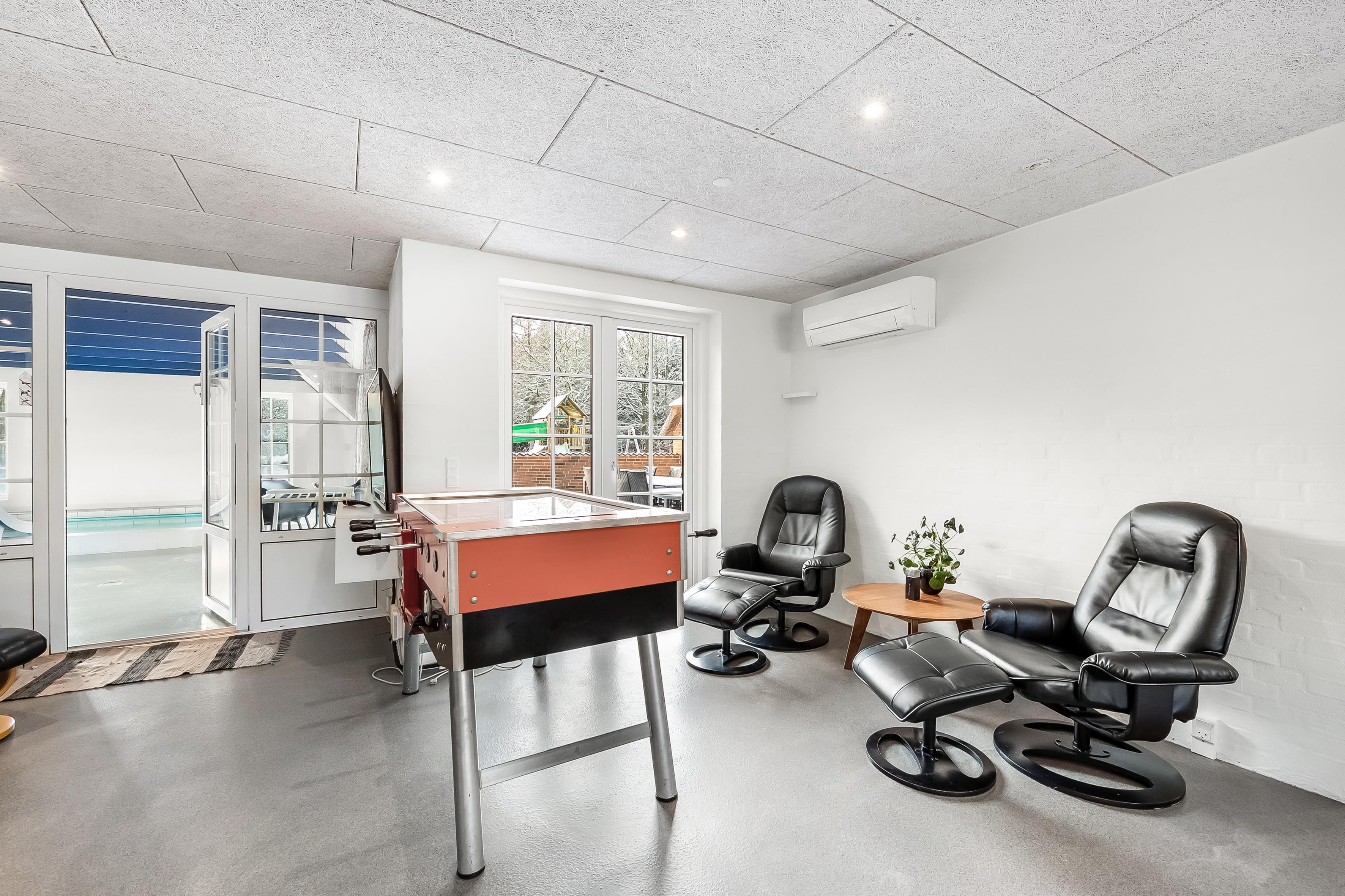 For ekstra underholdning findes et lille separat rum med ekstra fjernsyn og en PlayStation 3. Tag glæde af den 50 kvadratmeter store lukkede terrasse, der inviterer til afslapning og sociale øjeblikke. Børnene vil elske gynge, sandkasse, legetårn, rutsjebane, beachvolley og fodboldmål, mens den nærliggende Vesterhavet kun er 1400 meter væk, hvilket gør det let at nyde strandens skønhed og atmosfære. Dette poolhus lover en ferie fyldt med sjov, komfort og mindeværdige øjeblikke.