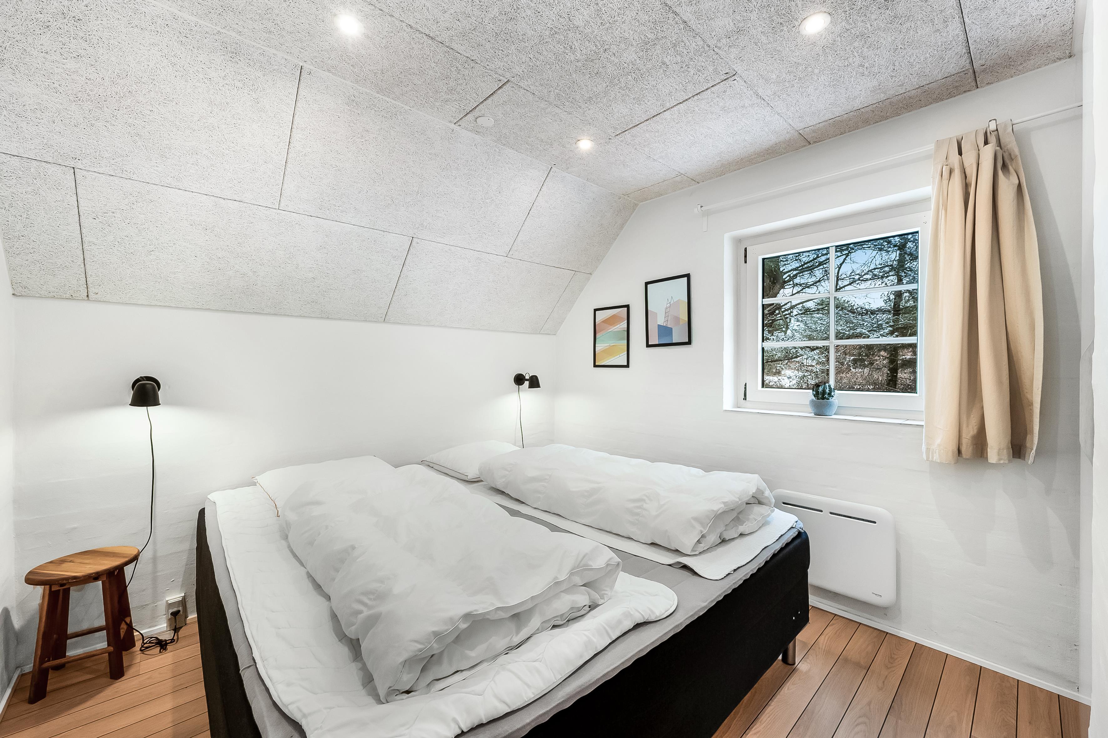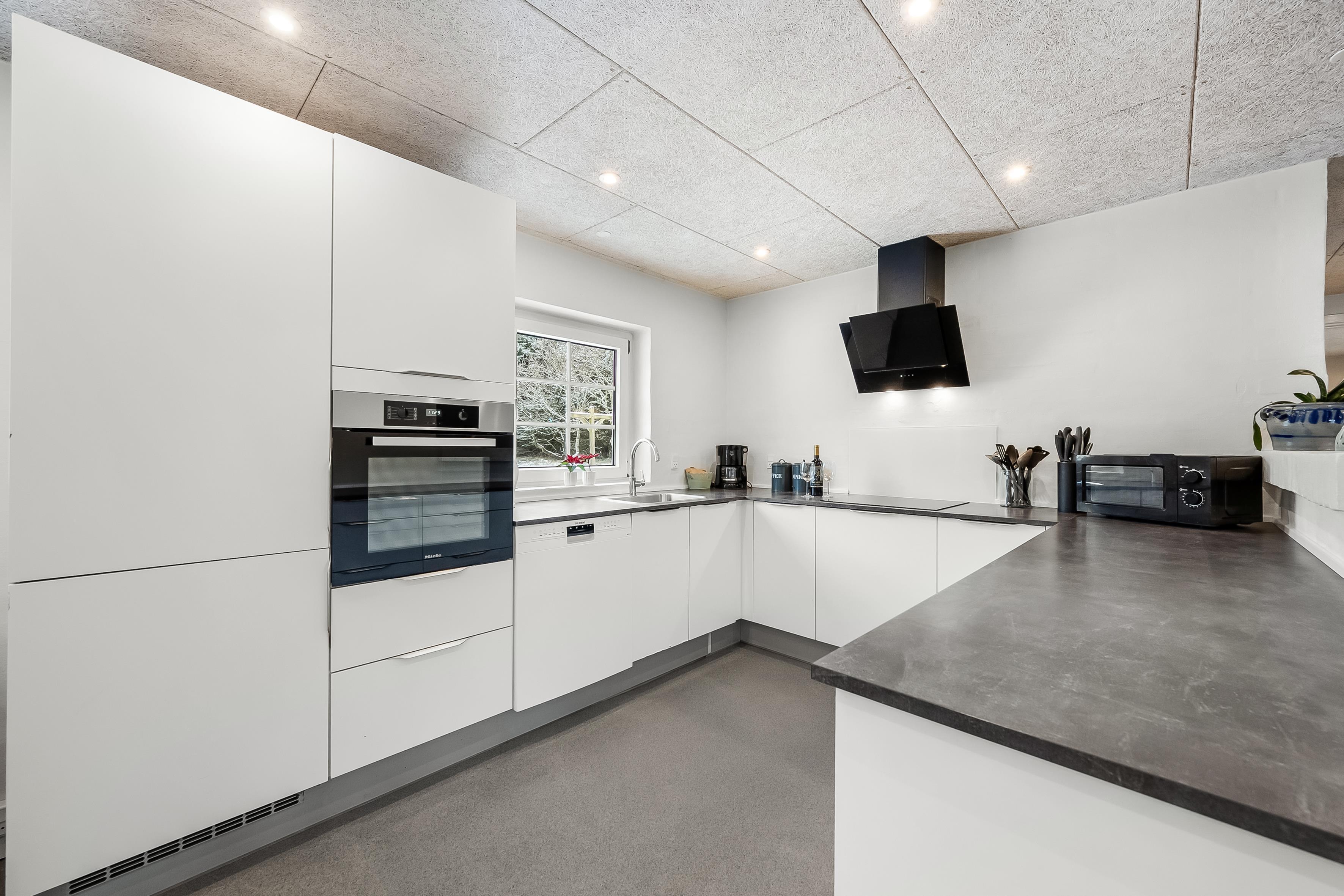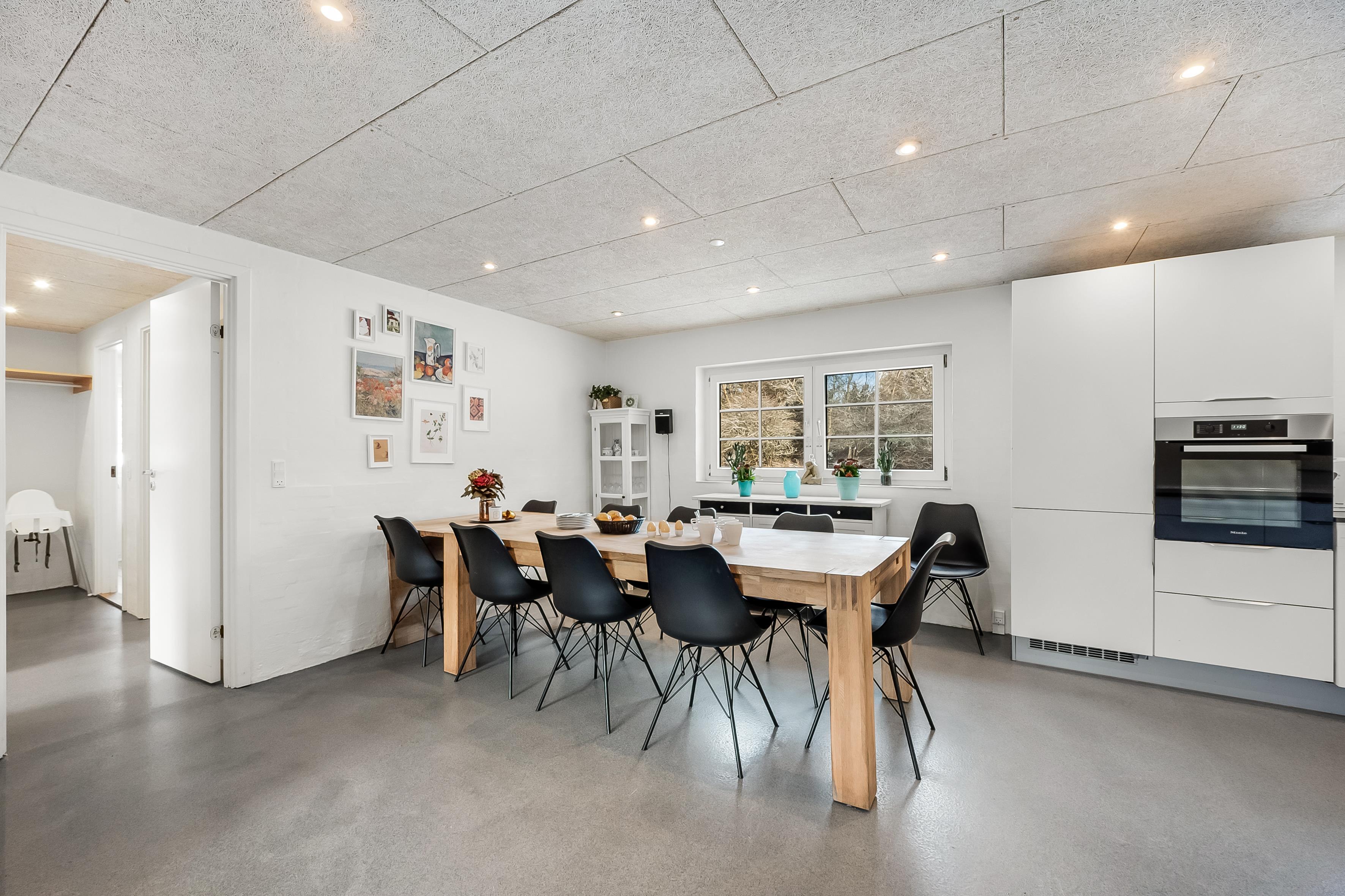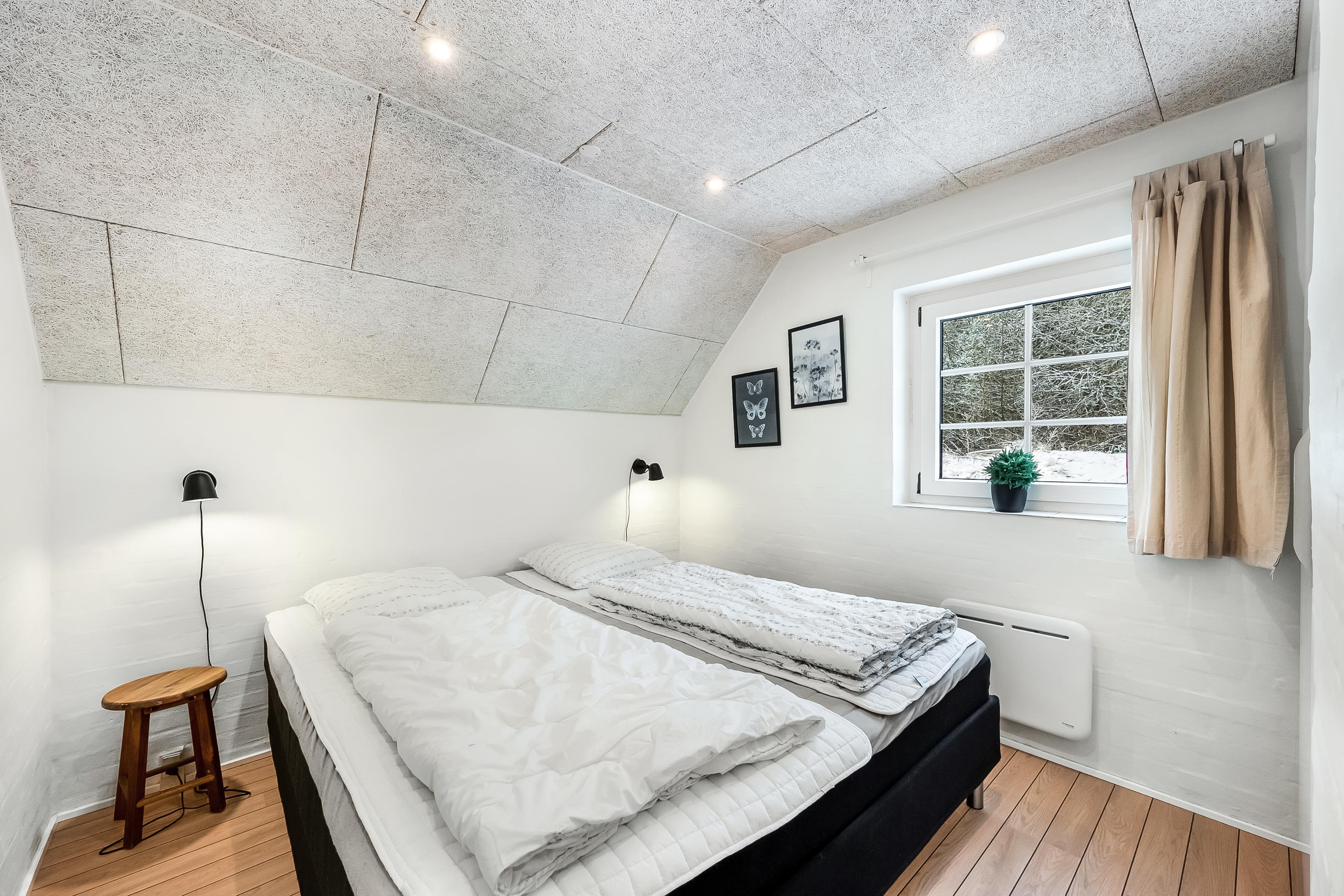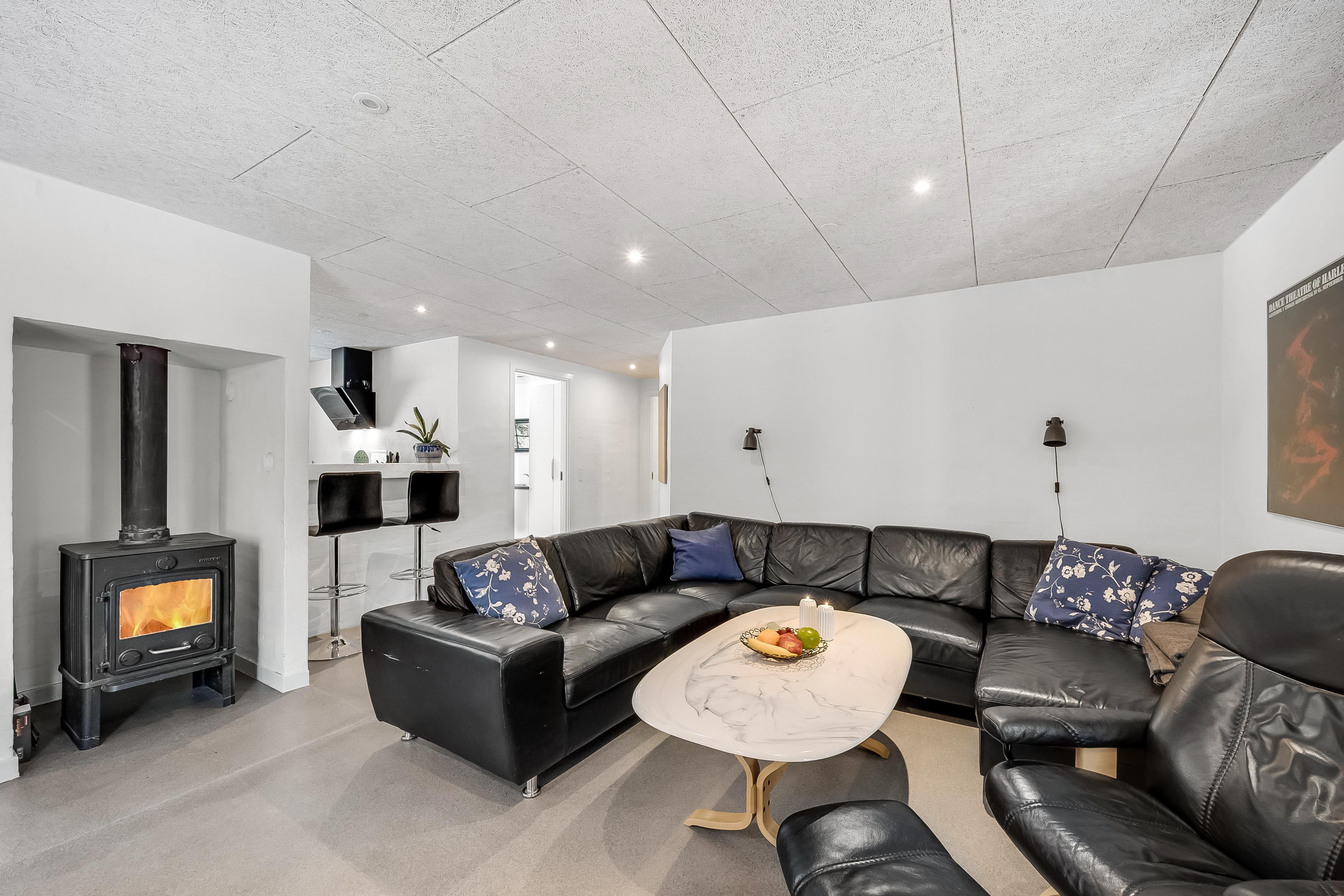 Det lyse køkken-alrum danner hjertet af huset med et veludstyret køkken, der omfatter ovn, 4 keramiske kogeplader, mikrobølgeovn, opvaskemaskine, køleskab og en rummelig 69 liters fryser. En brændeovn skaber hygge og varme i det åbne rum. Slap af i det dejlige sofaarrangement foran den store fladskærm med Chromecast, parabol og radio. Der er også trådløst internet og en energibesparende luft til luft varmepumpe.