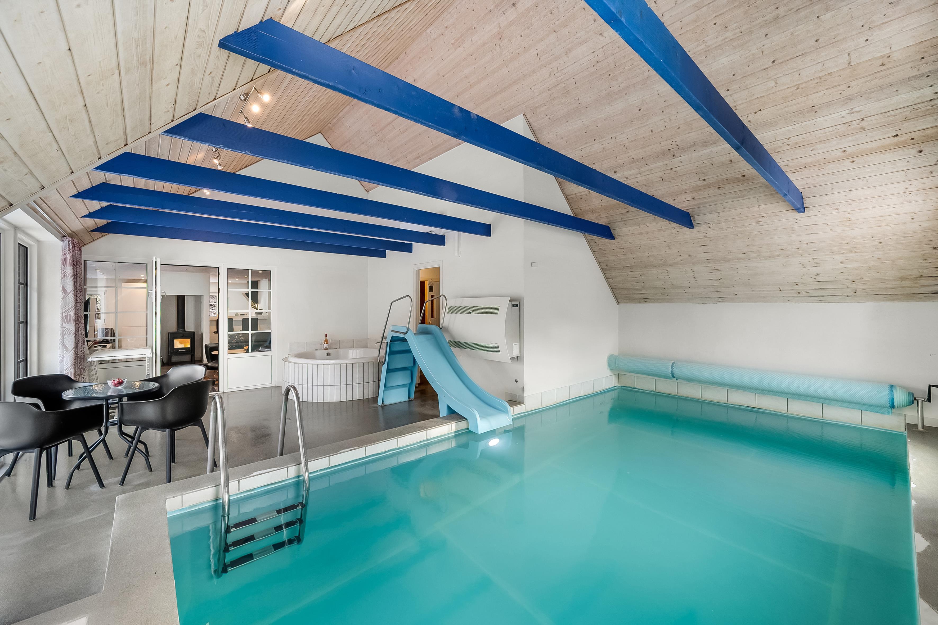 Bygget i 1992 og omfattende renoveret i 2020, kombinerer dette sommerhus charmen fra fortiden med moderne bekvemmeligheder. Træd ind i en verden af luksus og underholdning med den imponerende swimmingpool, udstyret med en energibesparende varmepumpe for at sikre behagelige temperaturer året rundt. En sjov vandrutsjebane, spabad og sauna tilføjer ekstra komfort og rekreation til din ferie.