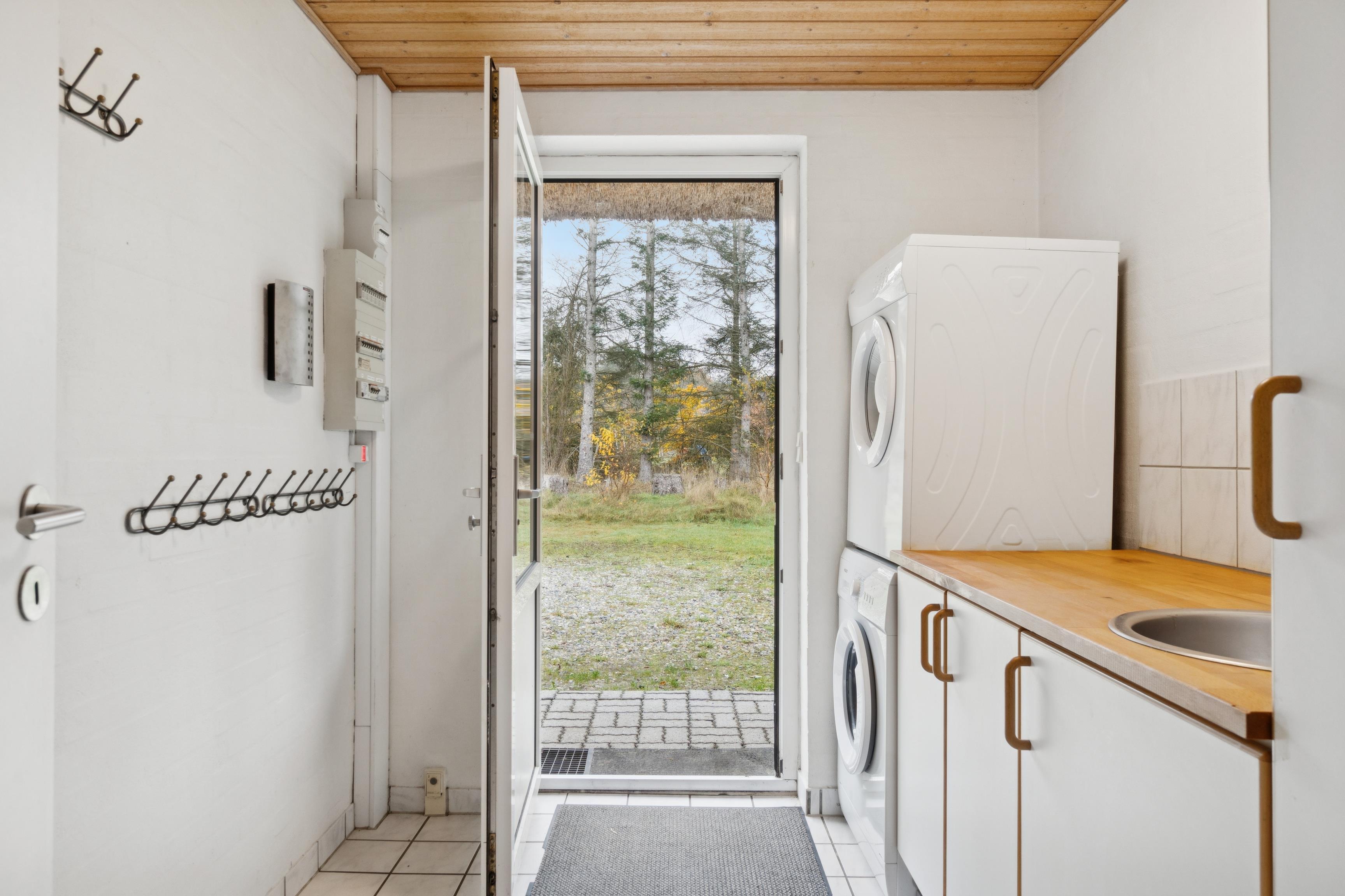 Udenfor kan I nyde solen på den store, lukkede terrasse med havemøbler og god plads til både grill og afslapning.