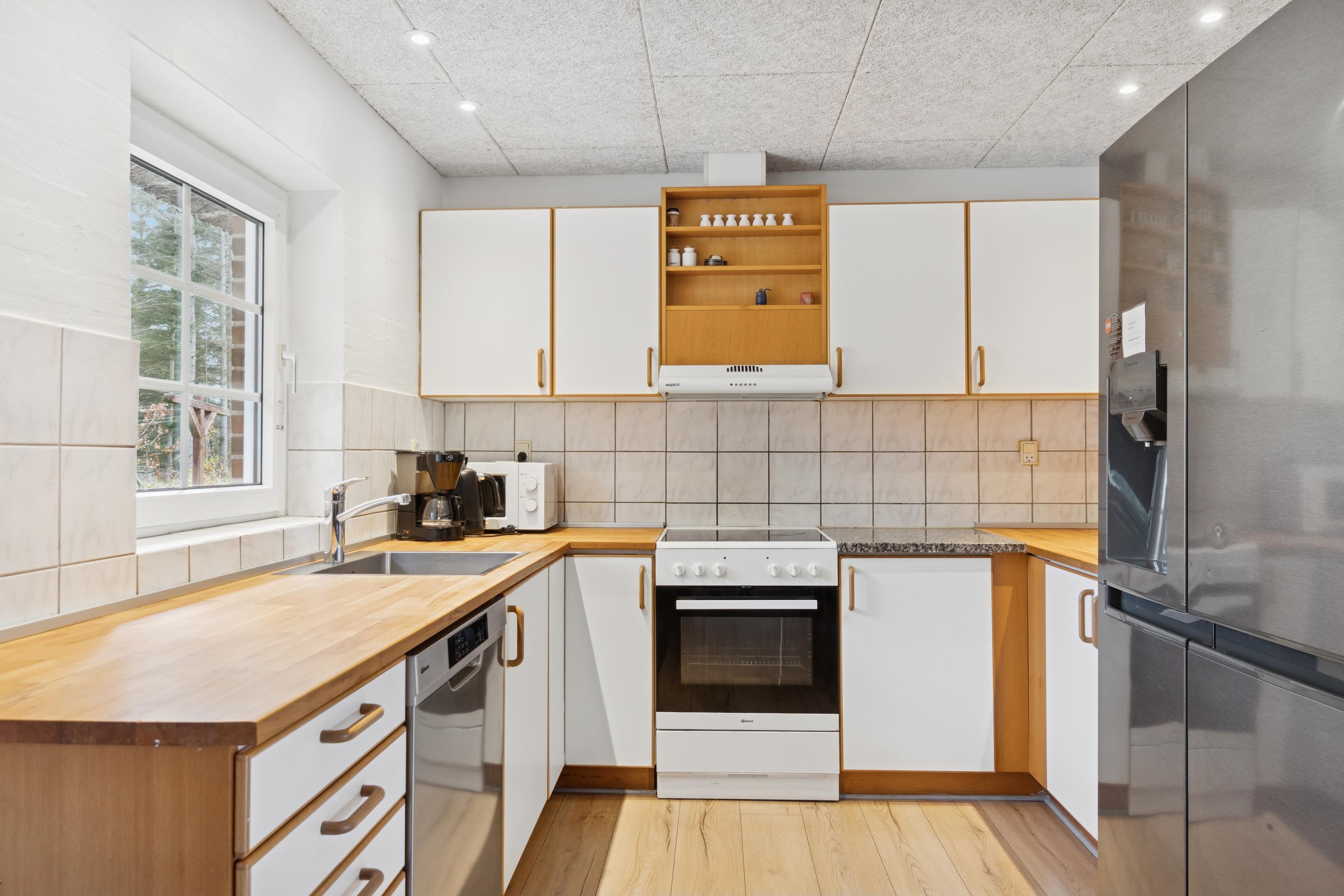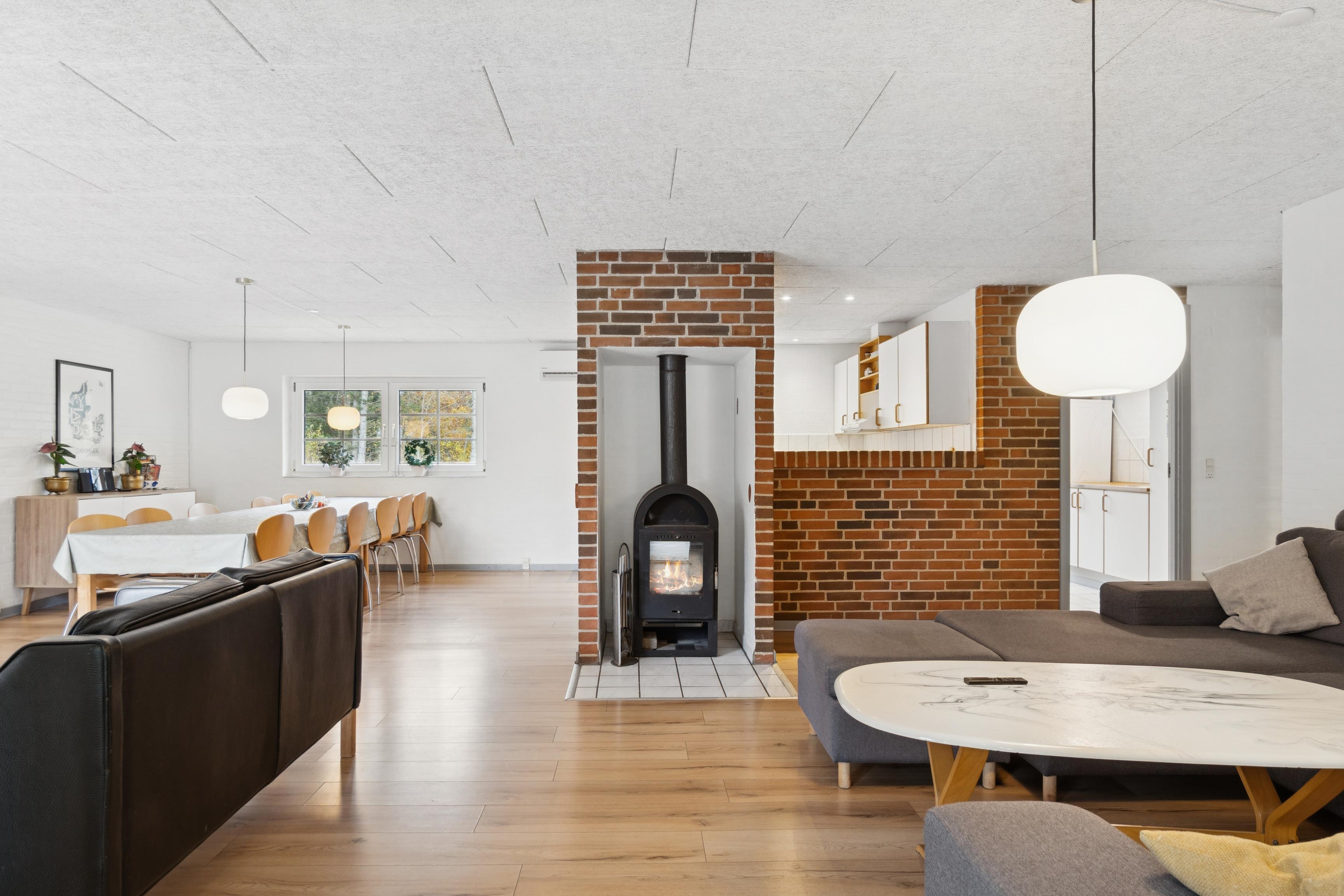 Midtpunktet i huset er det lyse og rummelige køkken-alrum, hvor man kan samles om madlavning, spil og hyggelige stunder foran brændeovnen. I poolafdelingen venter både pool, spa og sauna – perfekte steder at slappe af efter en frisk gåtur ved havet.