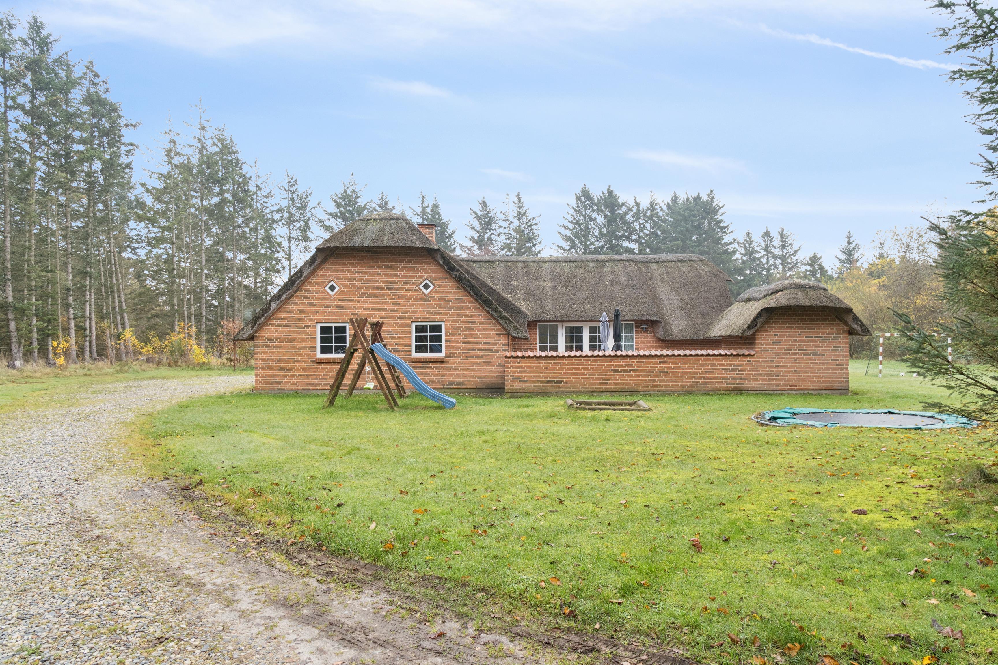 Velkommen til dette skønne, stråtækte poolhus, som ligger midt i den vestjyske natur på en stor grund på hele 5.000 m². Her er der god plads til både leg, boldspil og afslapning – og omgivelserne er rolige og naturskønne med kort afstand til det brusende Vesterhav.