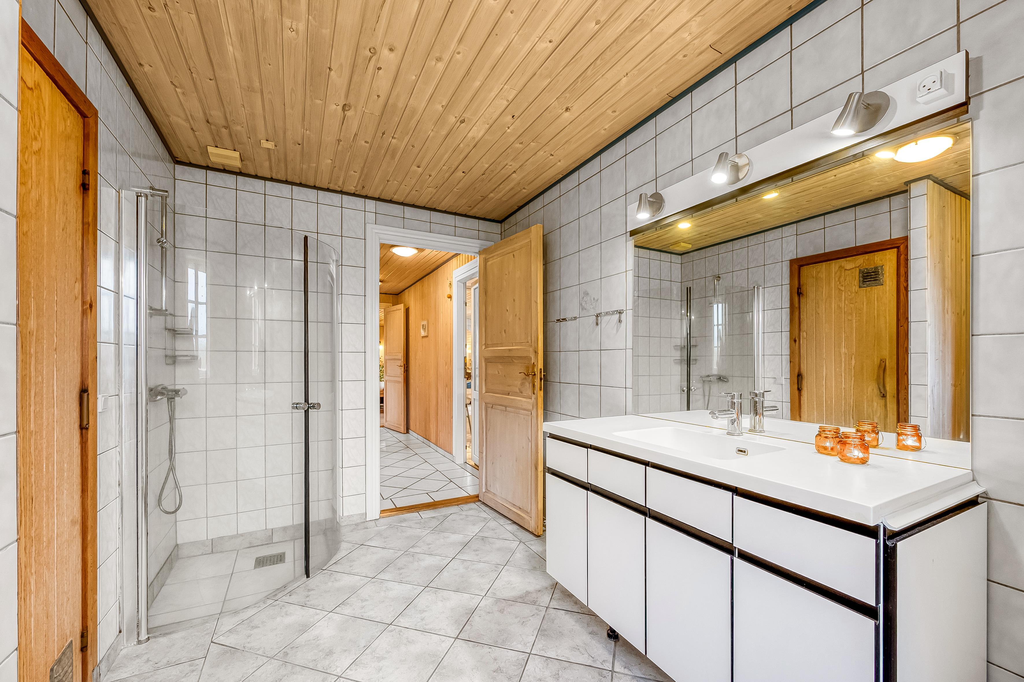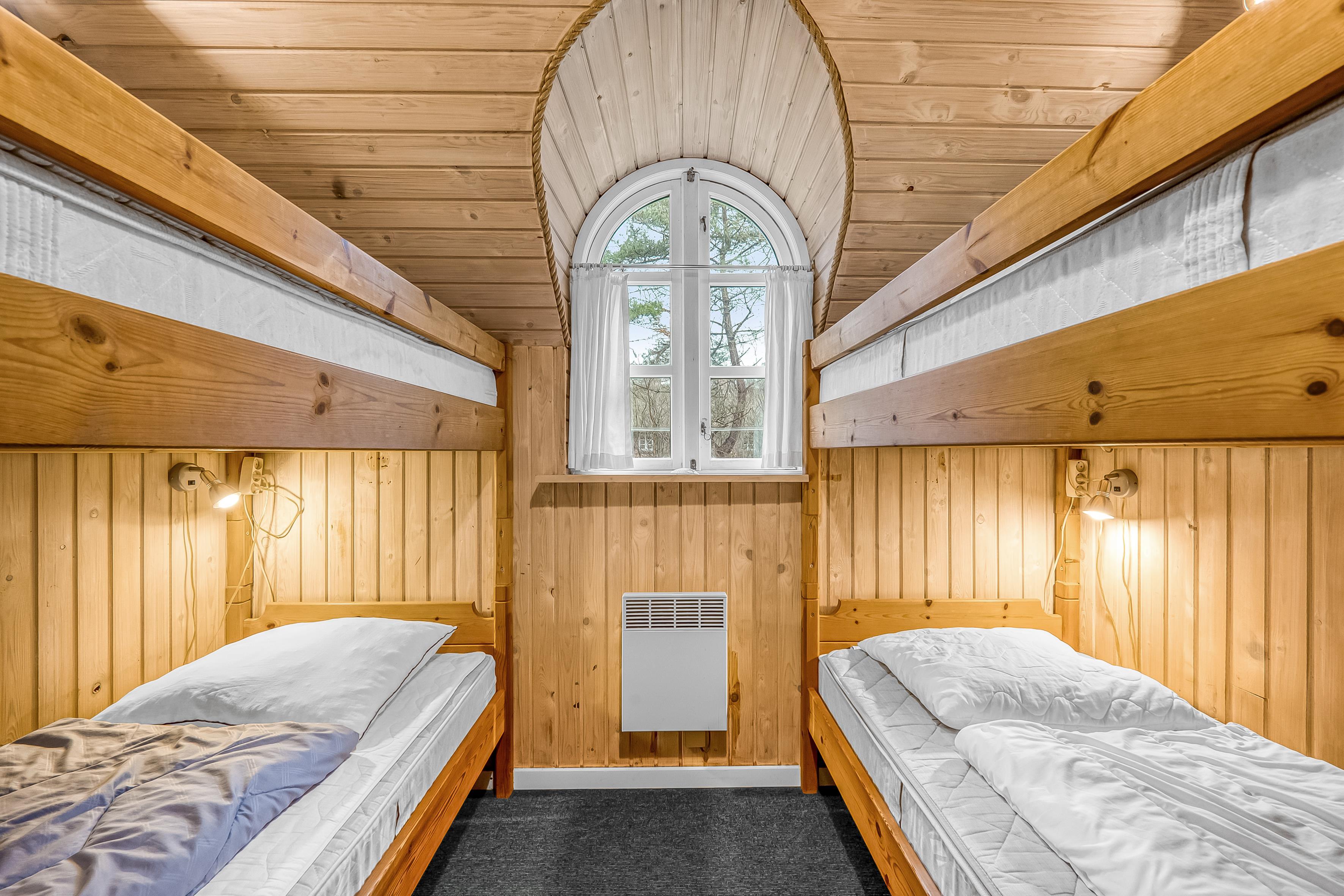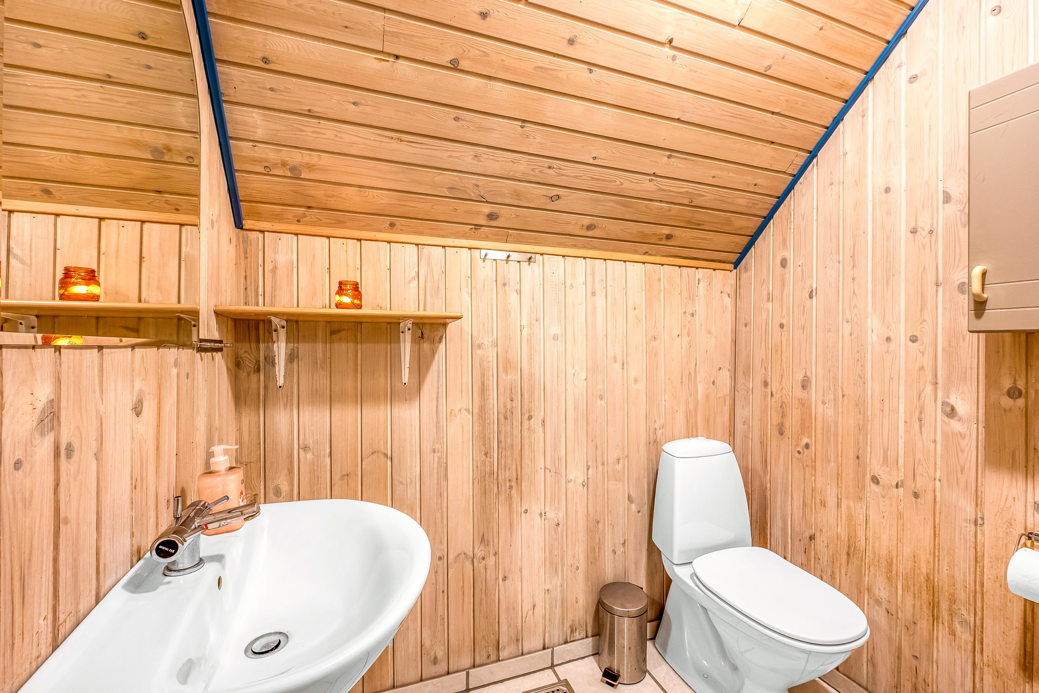 Der er fem soveværelser i huset, herunder tre med dobbeltsenge og to med køjesenge, hvilket giver masser af sovepladser til alle gæster. Badeværelset er udstyret med toilet, håndvask, bruseniche og gulvvarme, derudover er der desuden en bruser i poolrummet. Huset har samtidigt et gæstetoilet, hvilket er praktisk for større grupper.
