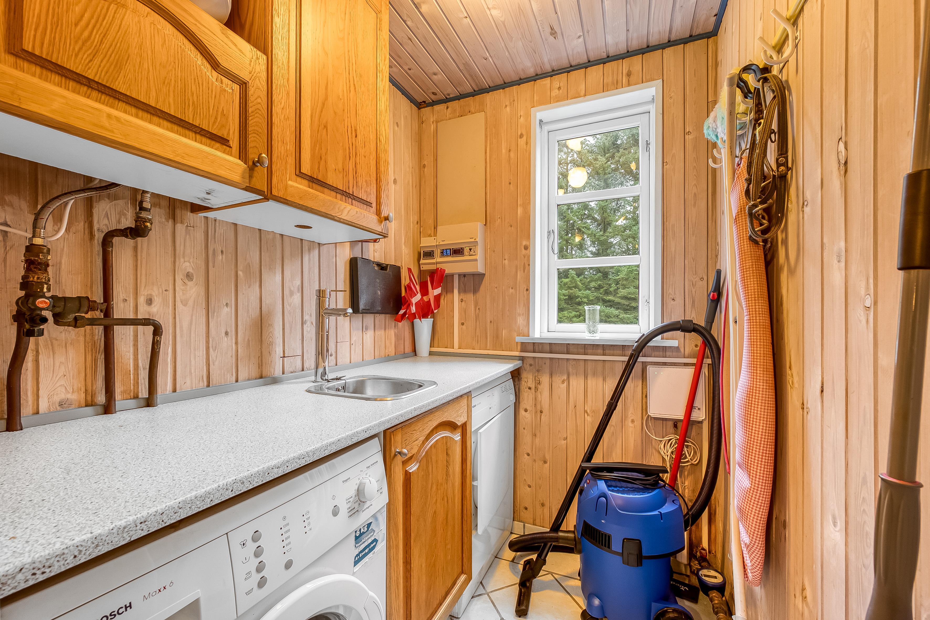Indendørs finder du et lyst og indbydende opholdsområde, hvor du kan slappe af efter en lang dag. Huset er udstyret med trådløst internet og et fjernsyn med både dansk og tysk TV, så du kan holde dig opdateret eller nyde en god film om aftenen. Køkkenet er fuldt udstyret med moderne apparater, herunder en mikrobølgeovn, ovn, keramisk komfur, opvaskemaskine og et stort køleskab med fryser på 60 liter, hvilket gør madlavning til en leg.
