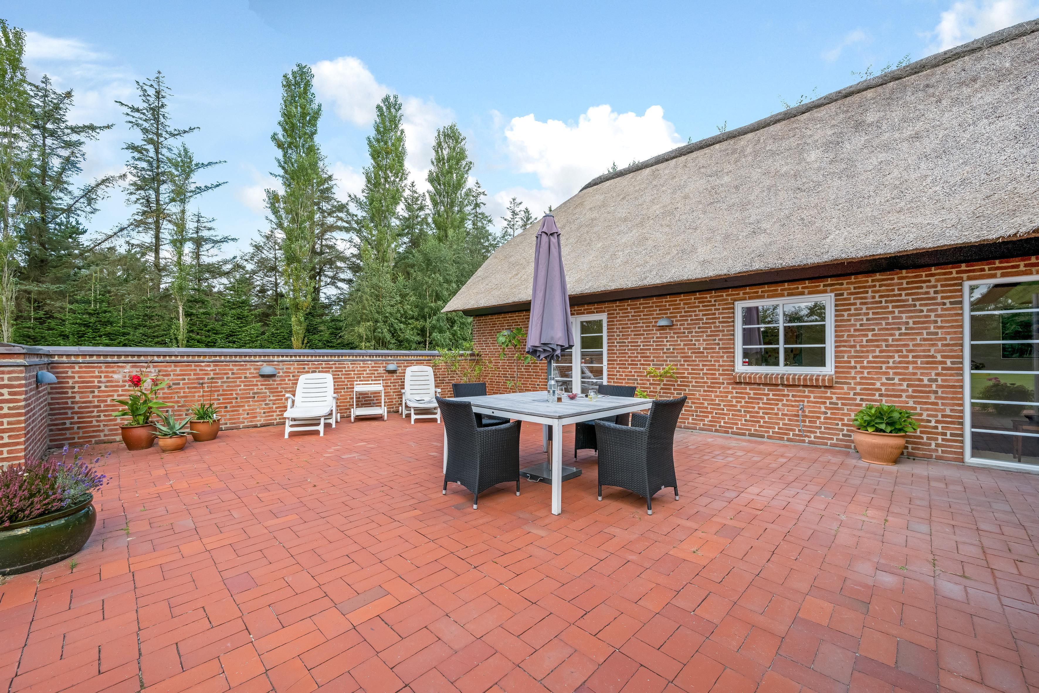 Udenfor finder du en dejlig terrasse med grill, hvor du kan nyde lange sommeraftener og lækre grilleretter under stjernerne. Der er også mulighed for at tage et afslappende bad i husets indendørs spa, som kan rumme to personer, samt en sauna, hvor du kan forkæle dig selv efter en lang dag.