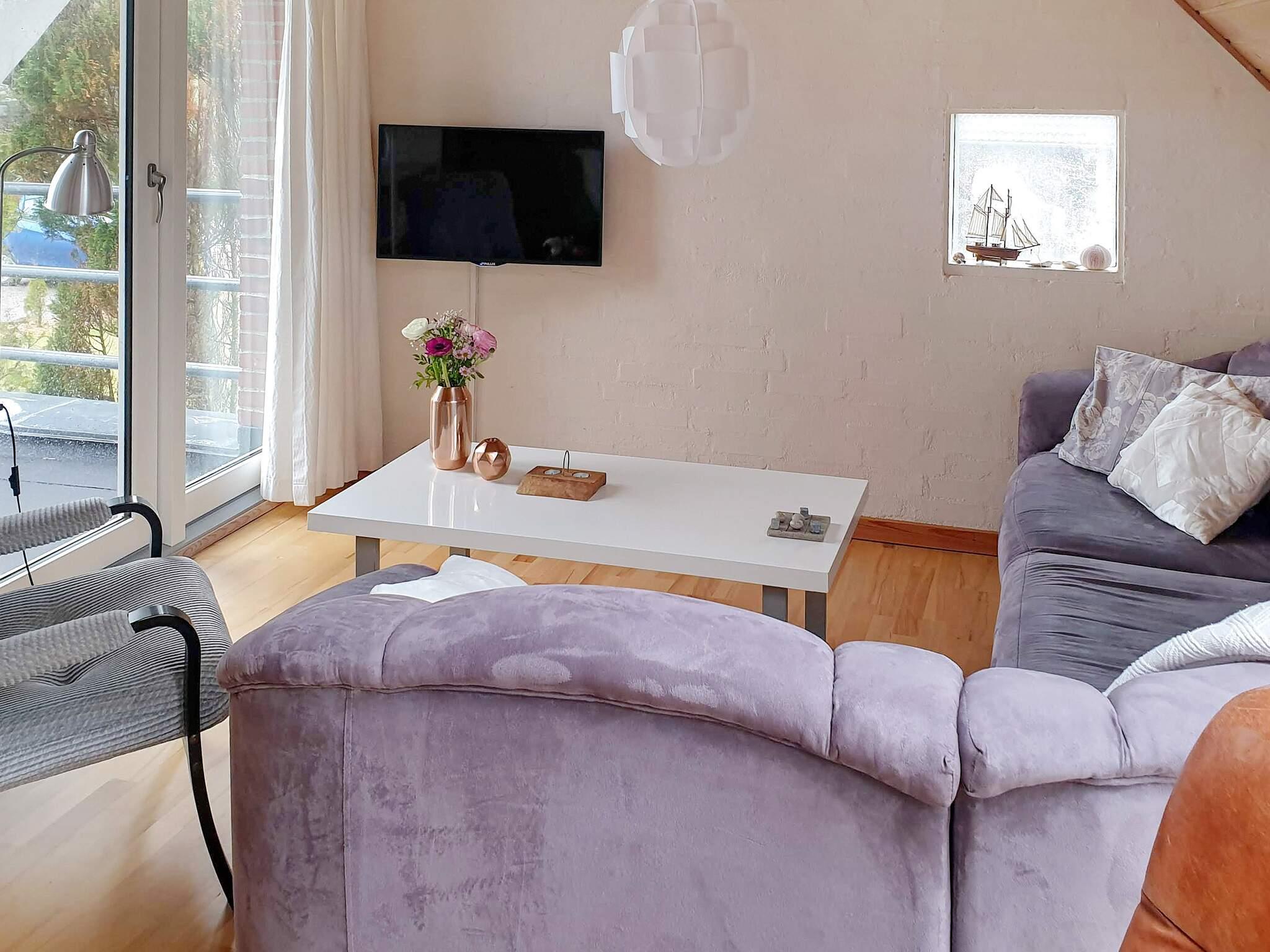 1.Sal: Stuen er komfortabel møbleret og udstyret med fladskærms-TV med både danske og tyske kanaler samt gratis internet. Der er mulighed for dobbeltopredning i stuen. Derudover direkte adgang til altan med panoramaudsigt over Limfjorden samt Livø. Rummeligt soverum med dobbeltseng samt direkte adgang til endnu en altan med udsigt over området, hvor morgenkaffen kan nydes. Endvidere gæstebadeværelse med toilet og håndvask. toilet, håndvask og spabad.