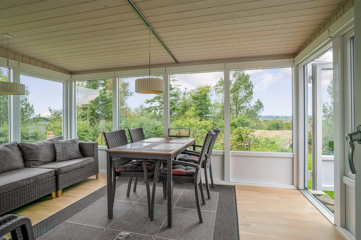 Dette sommerhus ligger på en stor beplantet grund med flere gode terrasser - i Hvalpsund ved Limfjorden. Fra husets udestue er der kik til fjorden. Huset ligger ikke langt fra en dejlig stor og fælles legeplads.