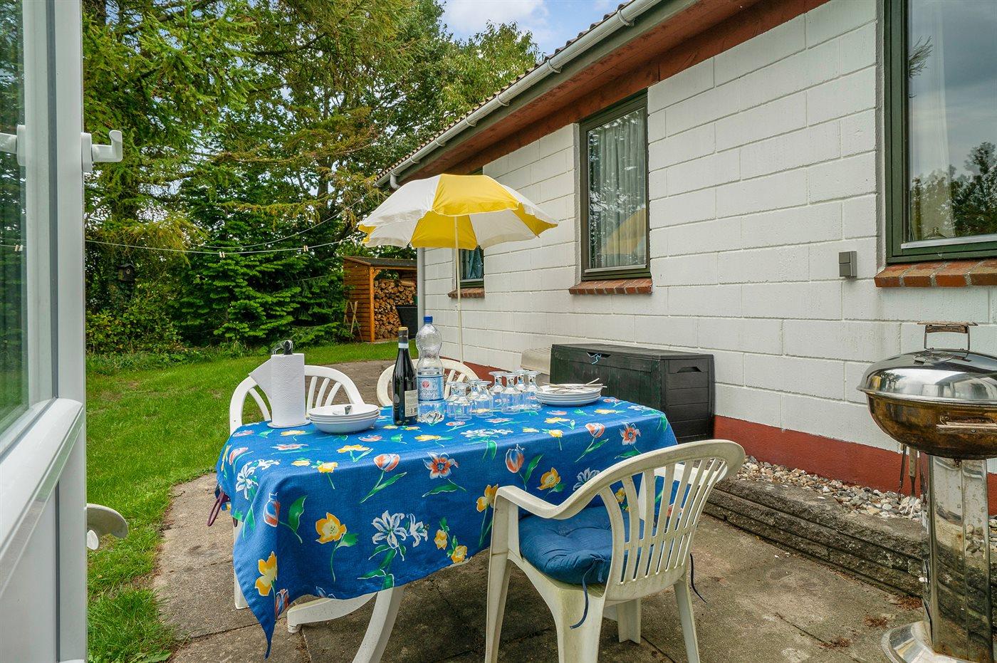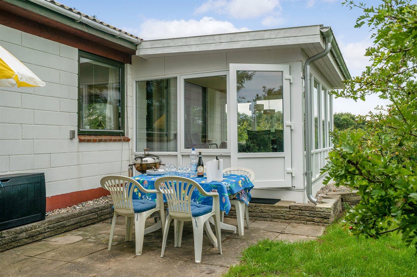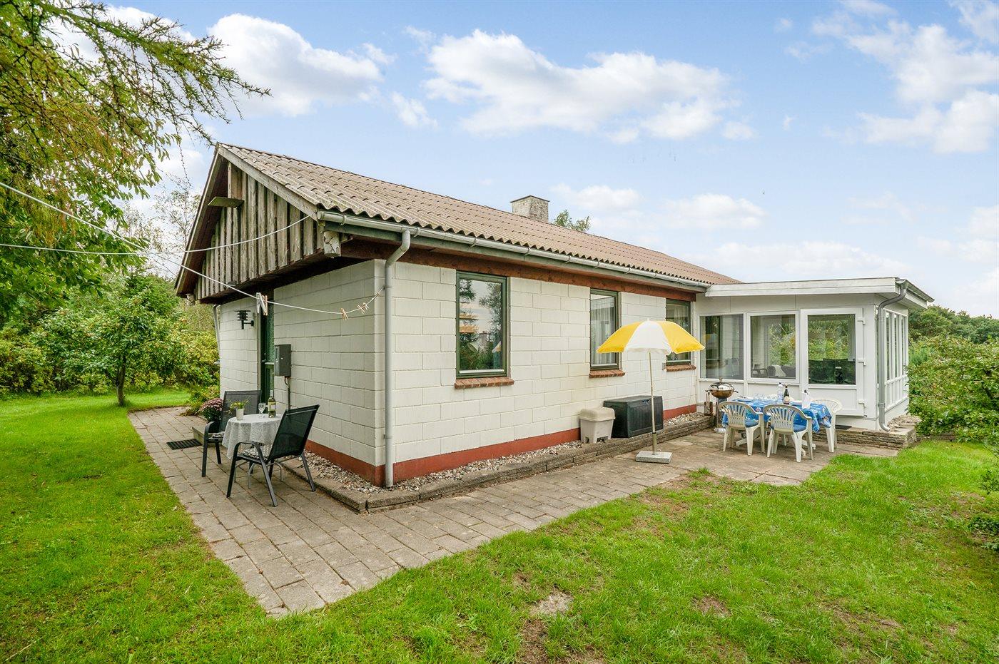Ferieboligen er beliggende på en 1204 m² stor havegrund. Der er 700 m til fjorden. Nærmeste forretning er beliggende i en afstand af 1200 m. Der er en golfbane i en afstand af 1700 m. Til ferieboligen hører 40 m² terrasseareal. Heraf i alt 22 m² lukket terrasse. Ligeledes er der adgang til udestue. Der er redskabsrum. Parkering ved ferieboligen.