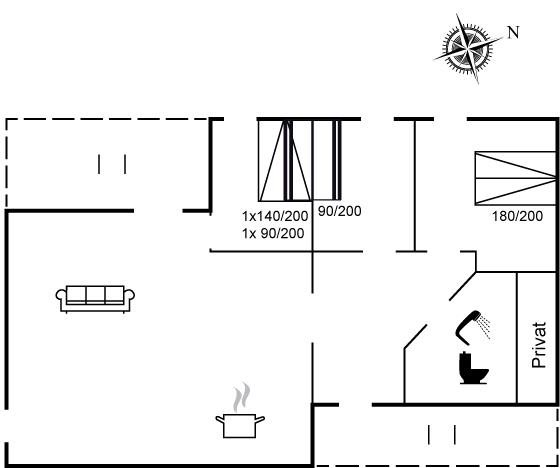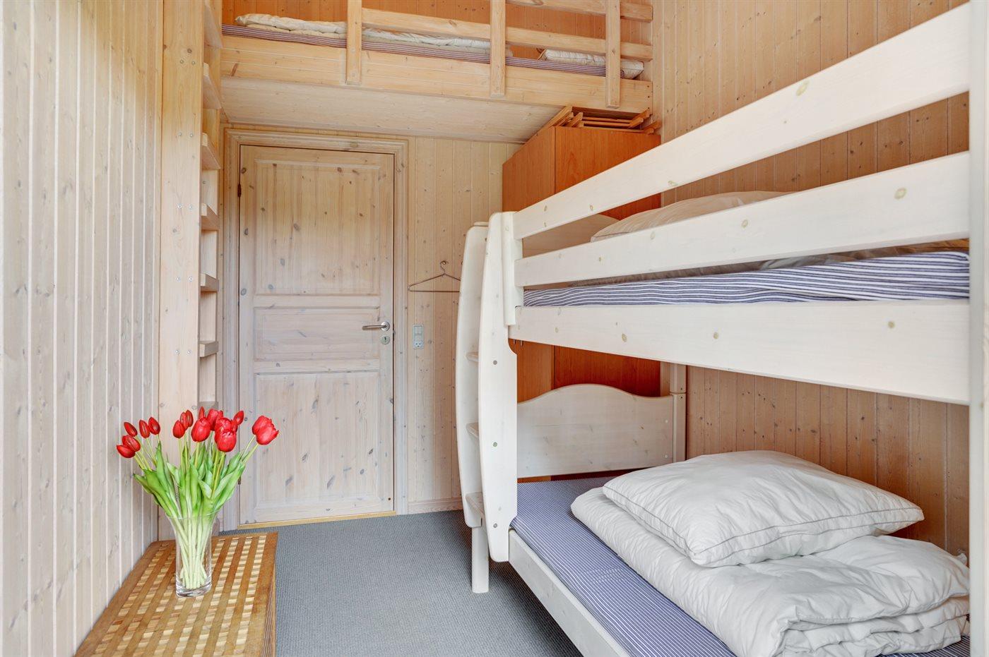 Der er i alt 3 soveværelser. Sovepladserne fordeler sig på: 4 sovepladser i dobbeltsenge. 3 sovepladser i køjesenge.