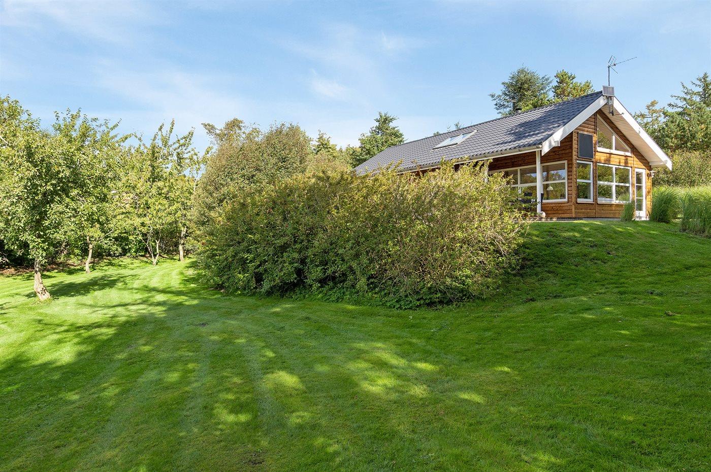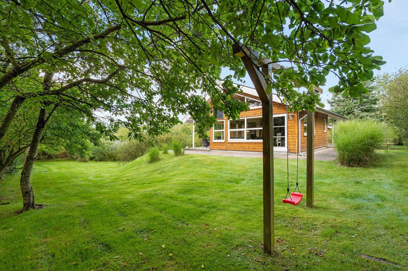 Ferieboligen er beliggende på en 1260 m² stor naturgrund. Der er 250 m til fjorden. Nærmeste forretning er beliggende i en afstand af 1000 m. Til ferieboligen hører 60 m² terrasseareal. Desuden er der 24 m² overdækket terrasse. Gynge. Sandkasse. Parkering ved ferieboligen.