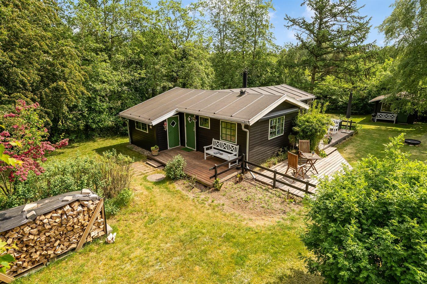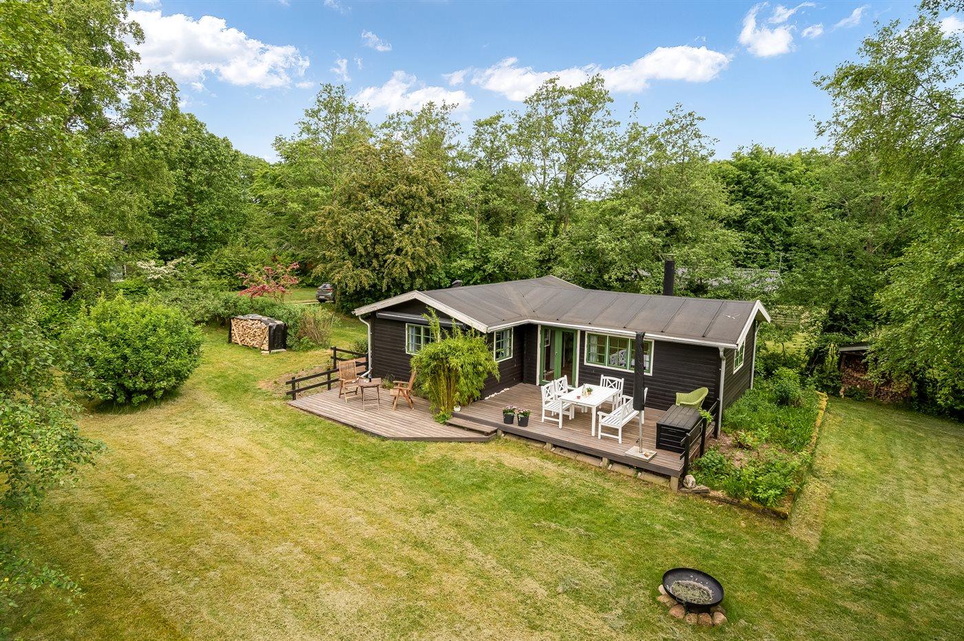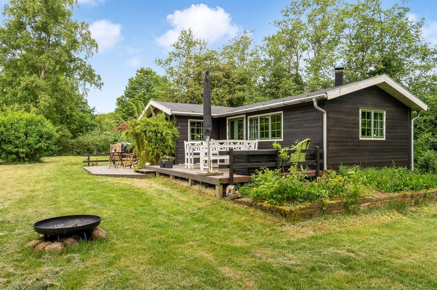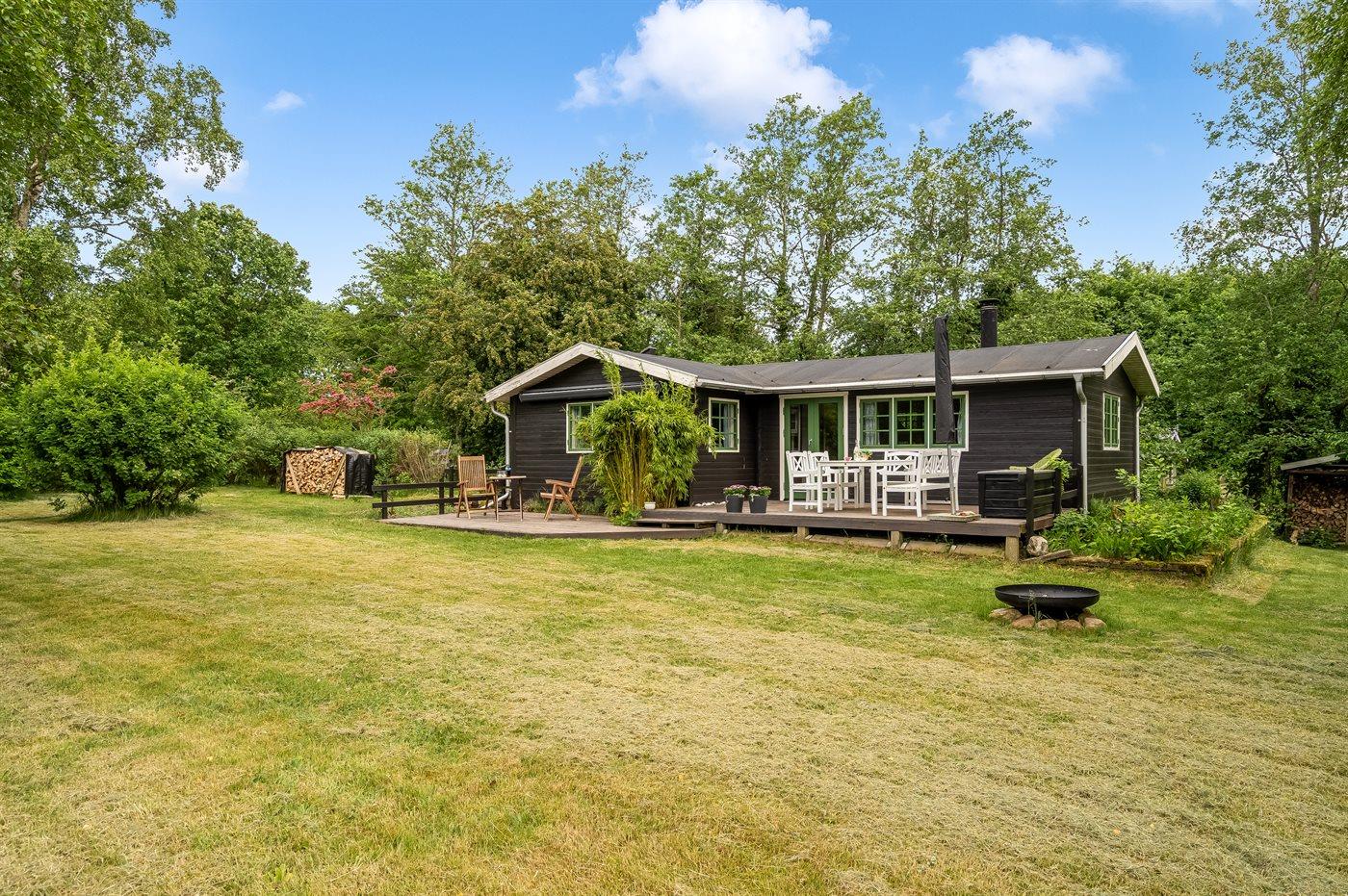 Hyggeligt sommerhus med 3 værelser, brændeovn og naturgrund nær fjorden i Hvalpsund.