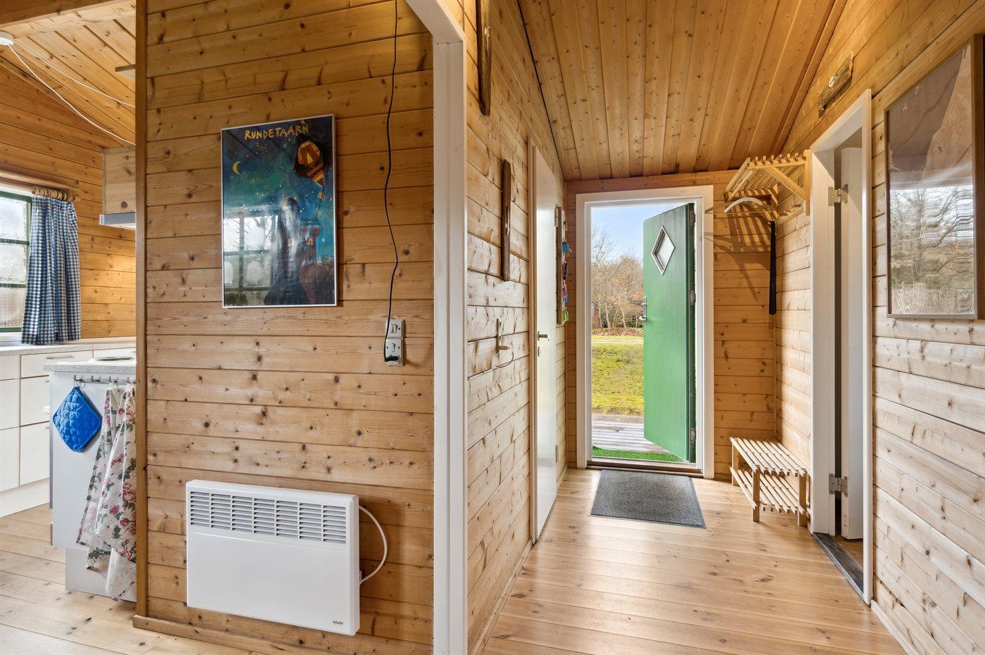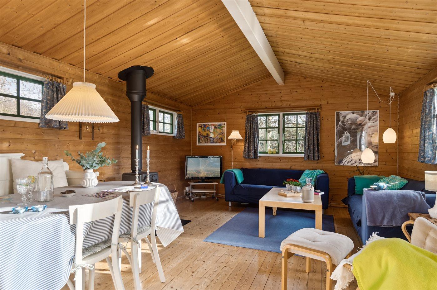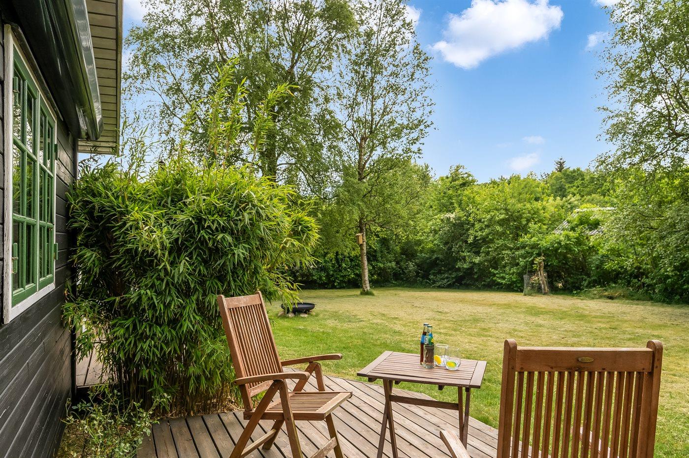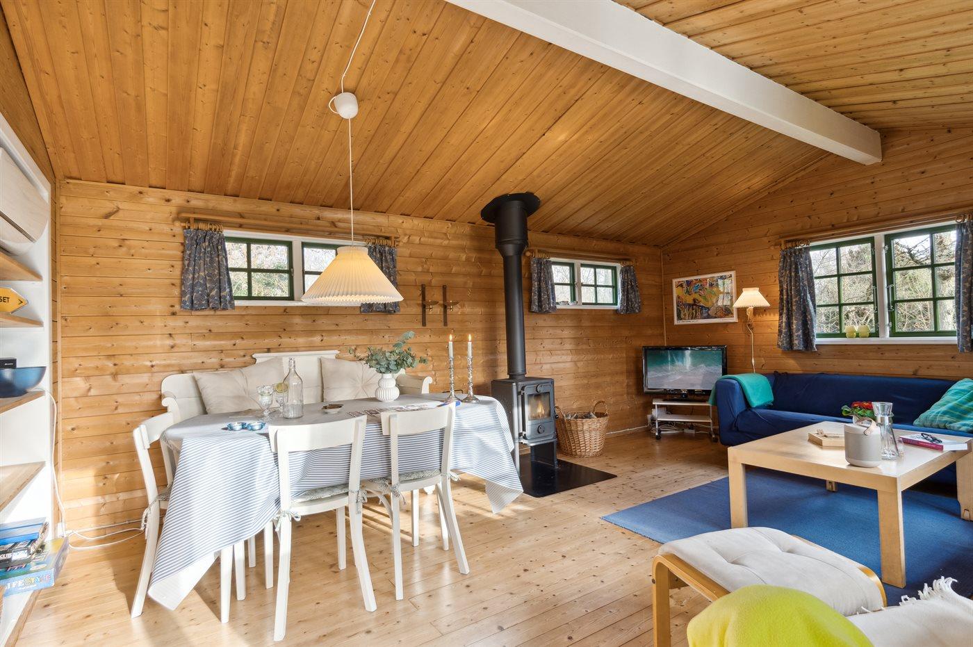 Hyggeligt sommerhus med 3 værelser, brændeovn og naturgrund nær fjorden i Hvalpsund.