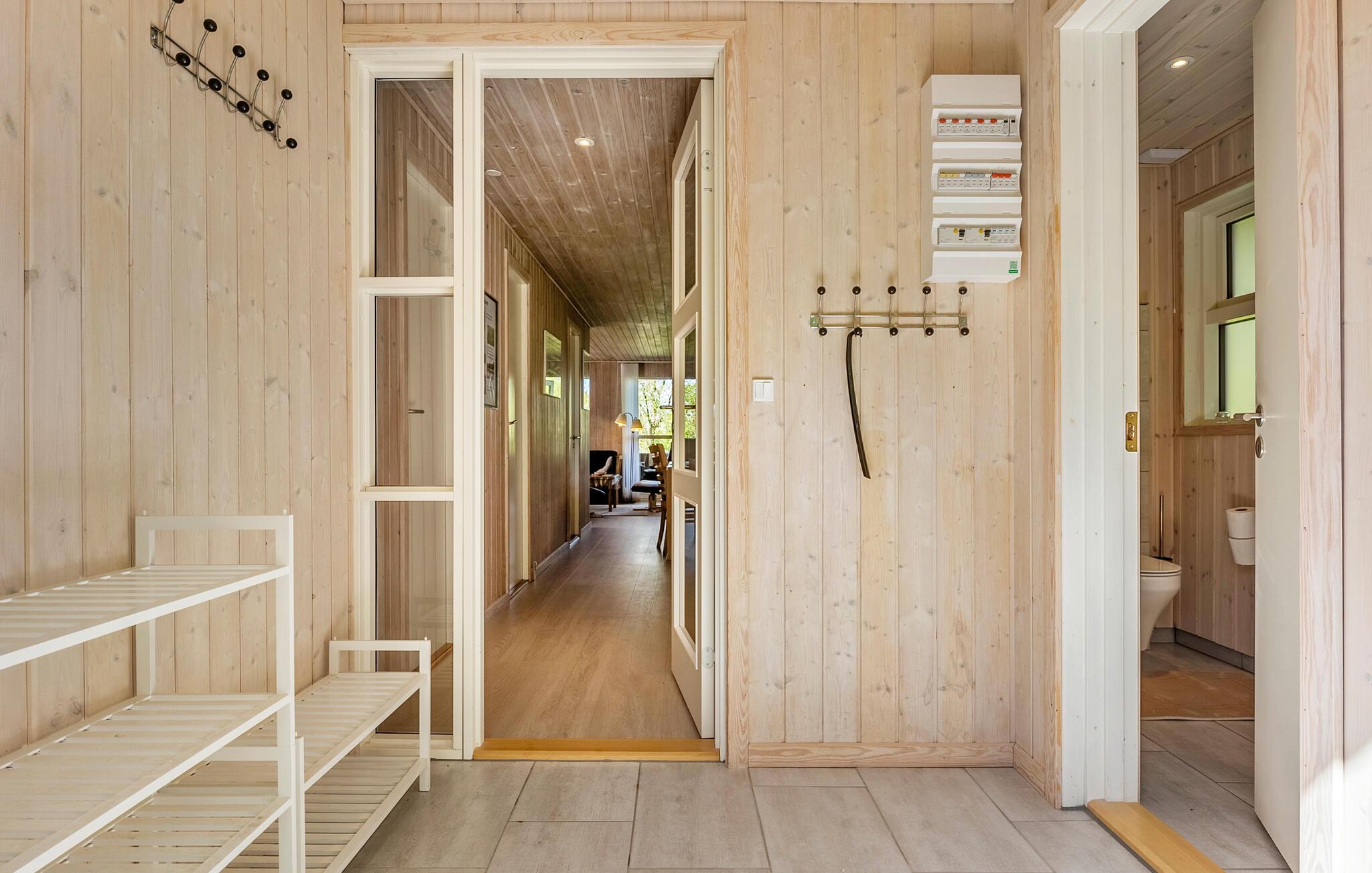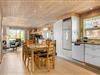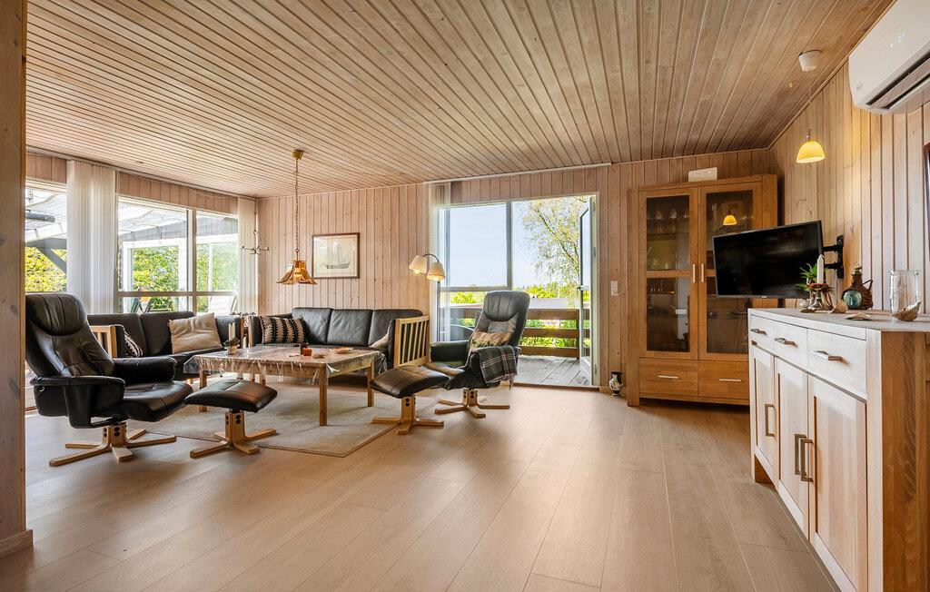 Dette charmerende feriehus er omgivet af en velplejet have og byder på nogle dejlige rammer for en rolig pause fra hverdagen. Start dagen med morgenmad på den overdækkede terrasse, eller nyd jeres måltider indendørs ved det store spisebord. Den åbne opholds- og spisestue med store vinduer lader dagslyset strømme ind og skaber en behagelig stemning. Læn jer tilbage i den komfortable sofa, se en film, eller afslut dagen med ild i brændeovnen.