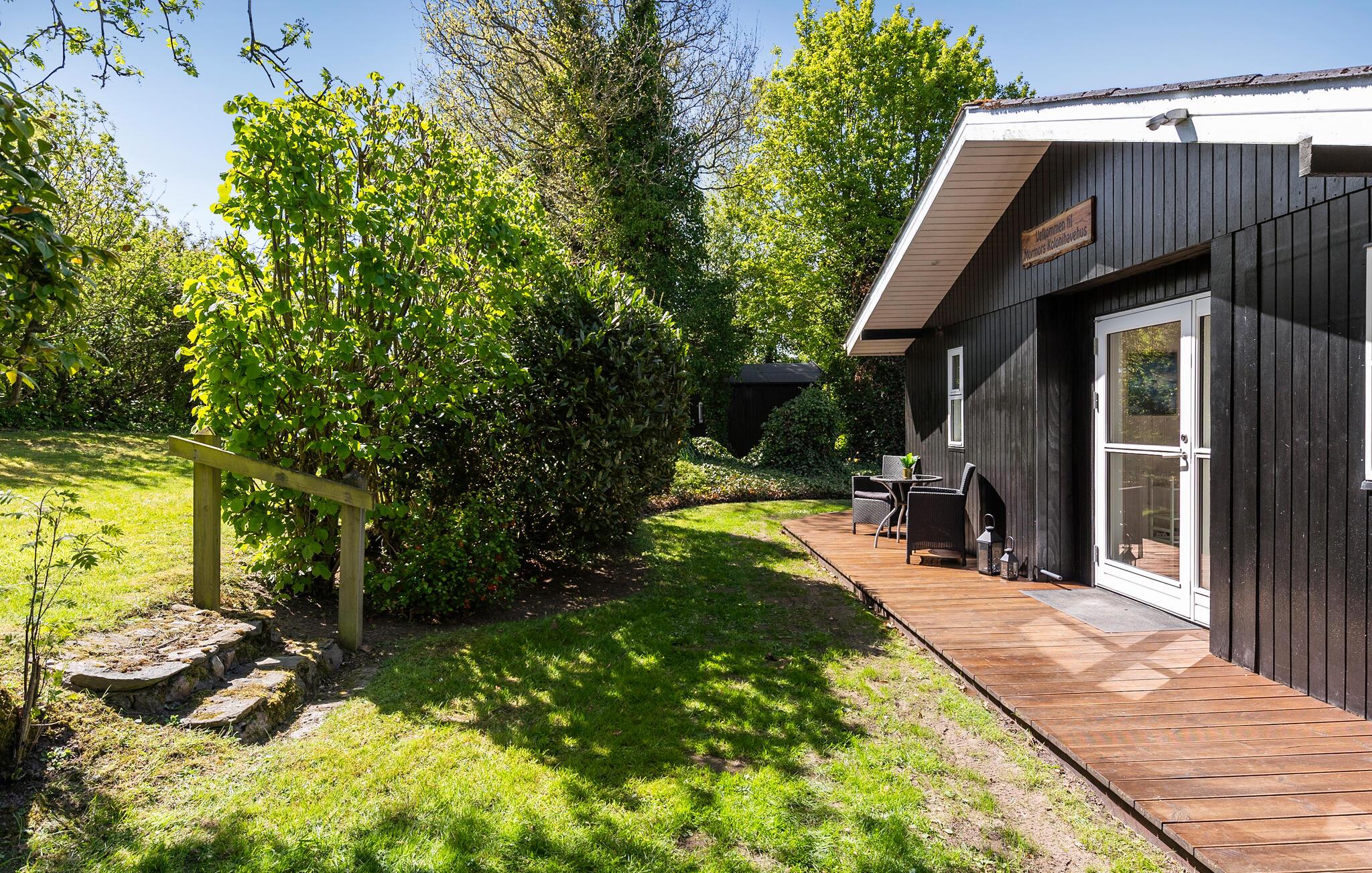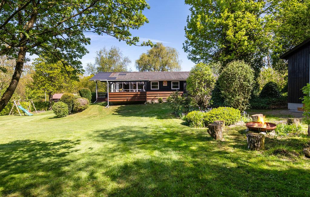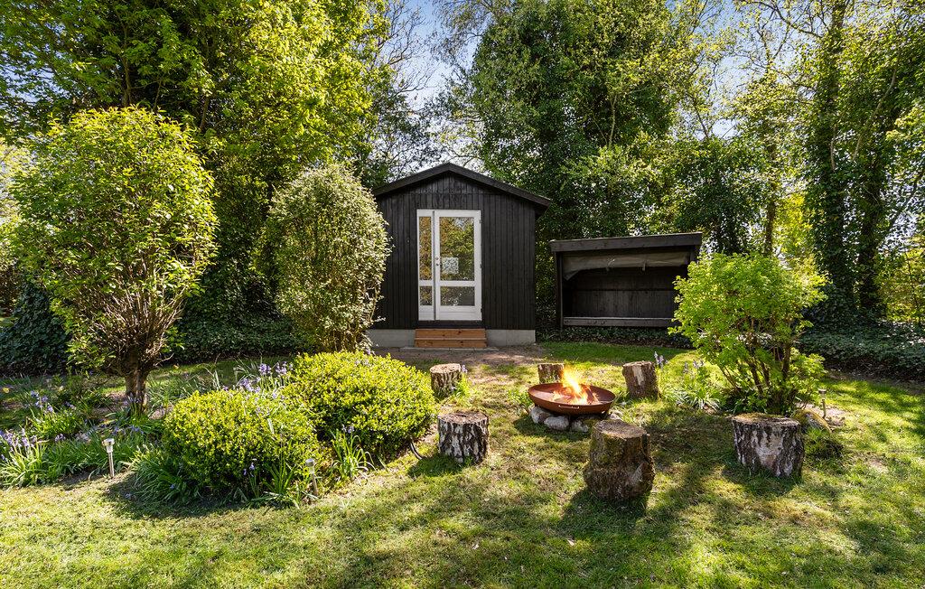 Udenfor venter flere terrasser med behagelige siddepladser, både overdækkede og i solen. Drik en kop kaffe i det grønne om eftermiddagen, eller slap af med en god bog. Børnene kan glæde sig til gynge, rutsjebane, sandkasse og masser af plads til leg. Brug bålpladsen i haven til hyggelige aftener med sange og spændende historier omkring lejrbålet.