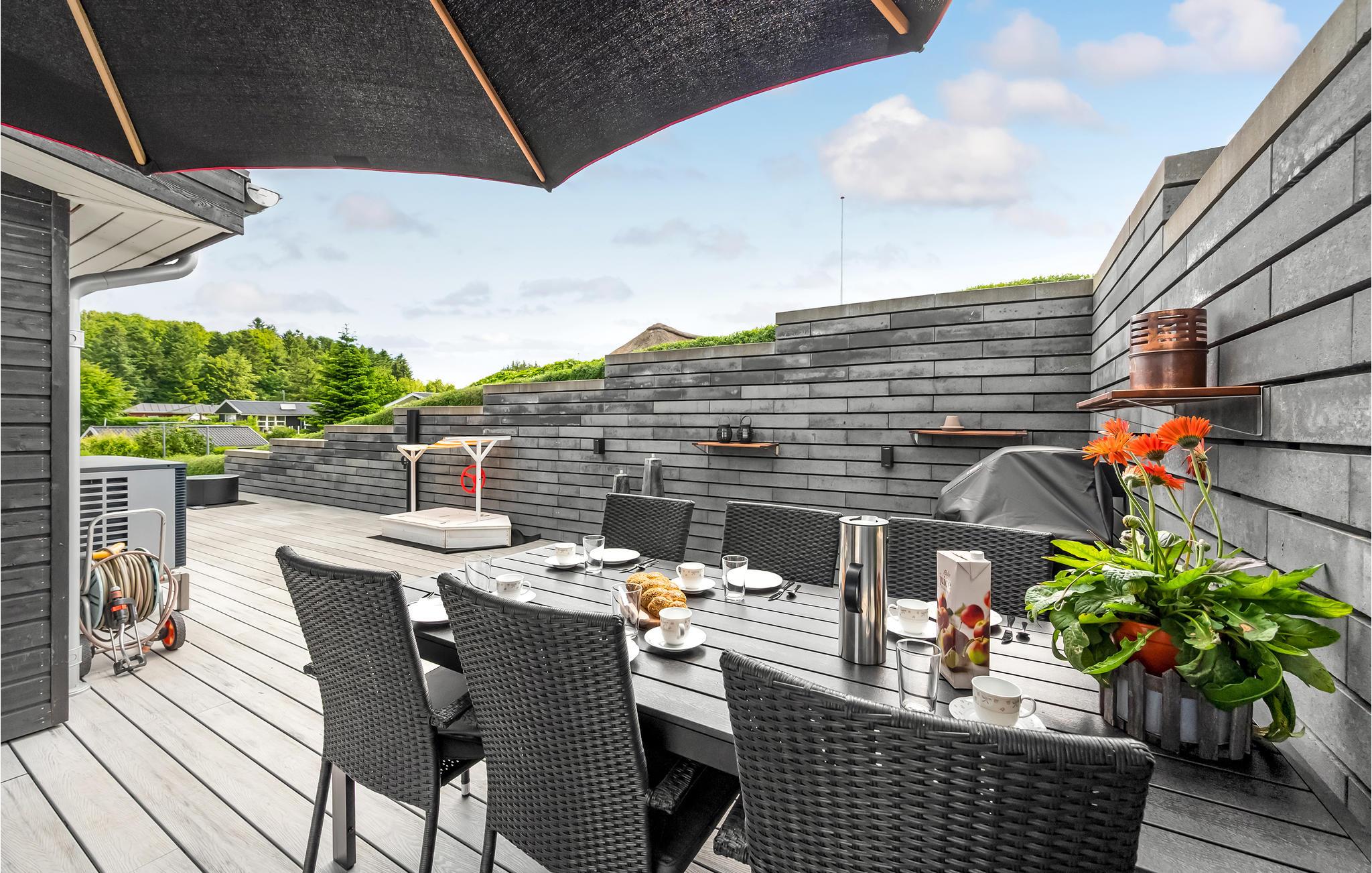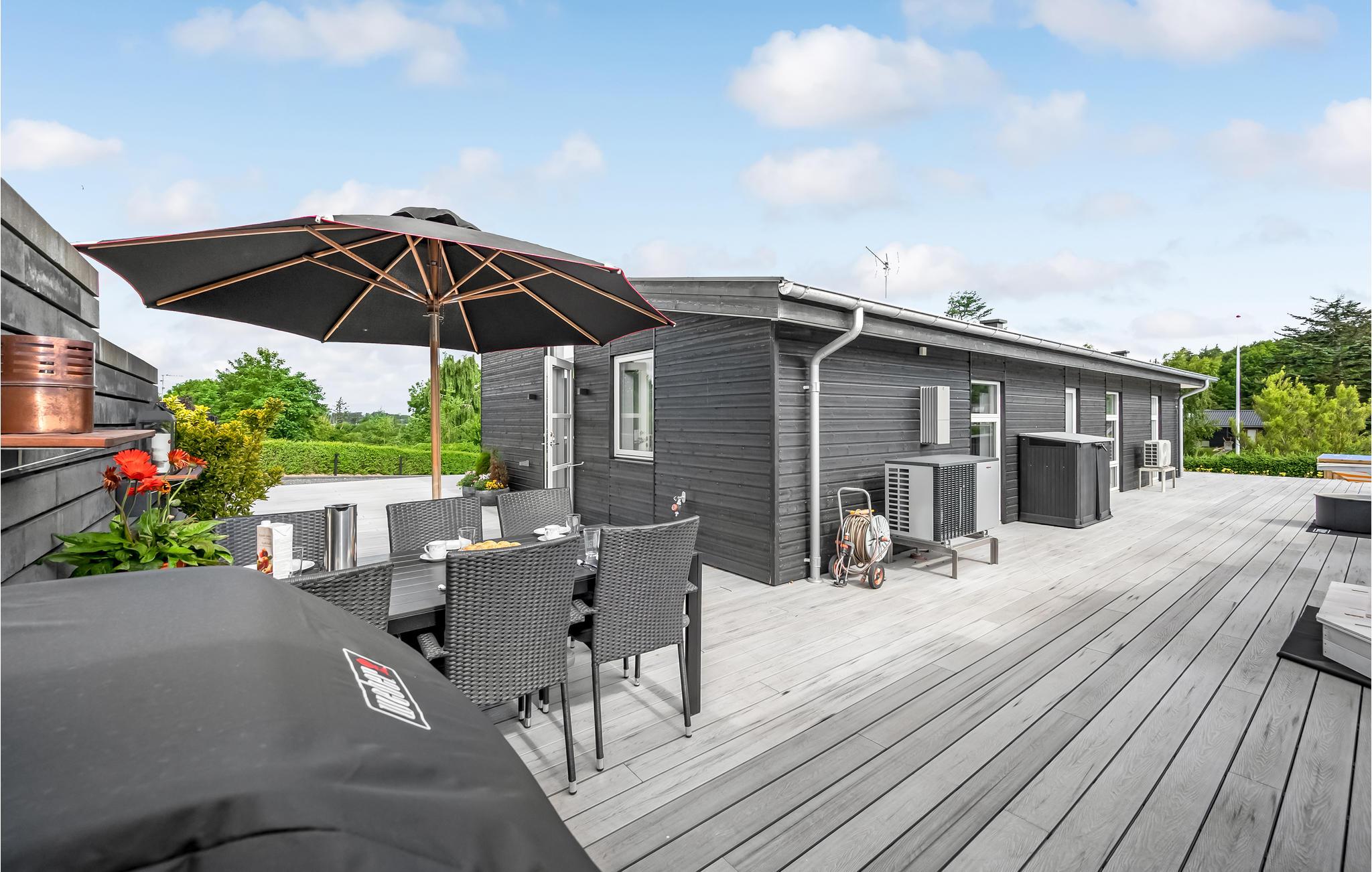 Luksuriøst sommerhus med stor træterrasse i skønne Hvalpsund.