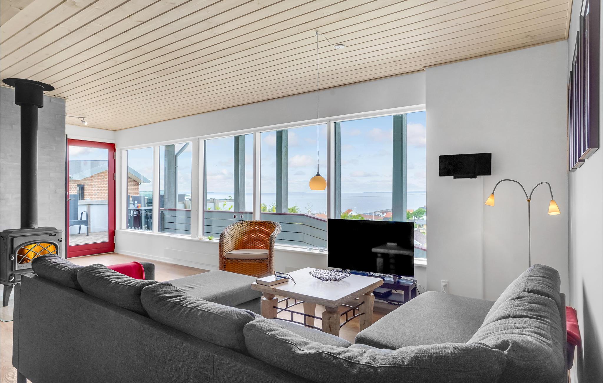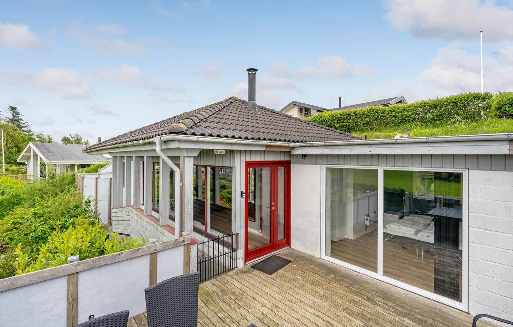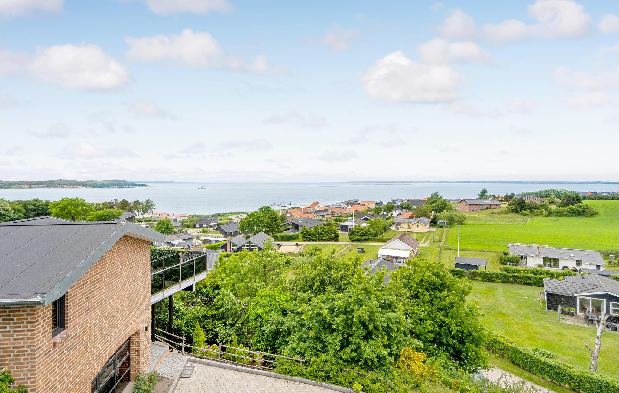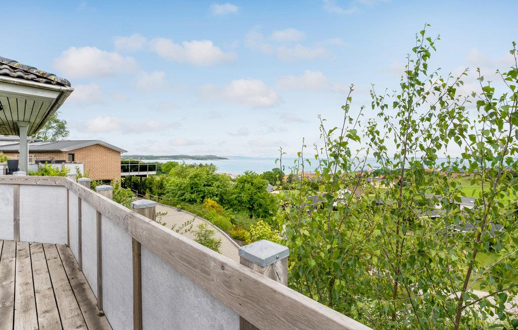 Moderne feriehus med panoramaudsigt over fjorden nær Hvalpsund, perfekt til familier med to solterrasser.