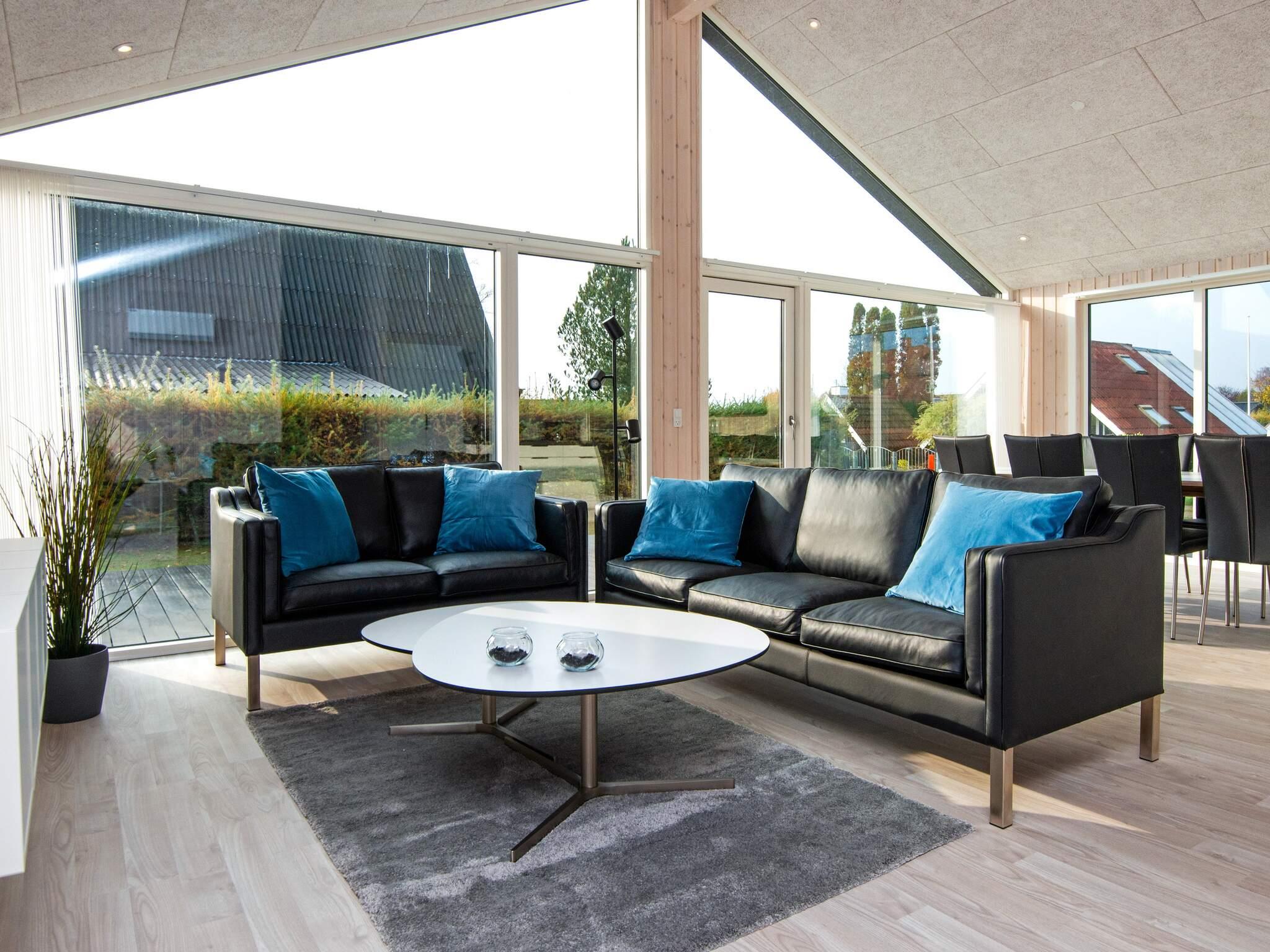 Gæsterne kan slappe af på badeværelset, som har både et beroligende spabad og en sauna, hvilket gør det nemt at nyde wellness og afslapning uden at forlade huset. Hjemmets hjerte er køkkenet og opholdsstuen i åbent plan, komplet med en spise- og opholdsafdeling, hvor hele familien kan samles til måltider, spil eller stille aftener ved fjernsynet. Store vinduespartier skaber en lys og imødekommende atmosfære og giver direkte udgang til den rummelige terrasse, der nærmest slynger sig om hele huset. Udstyret med udendørsmøbler er den ideel til grillaftener, til at slappe af i solen eller blot nyde den friske kystluft.