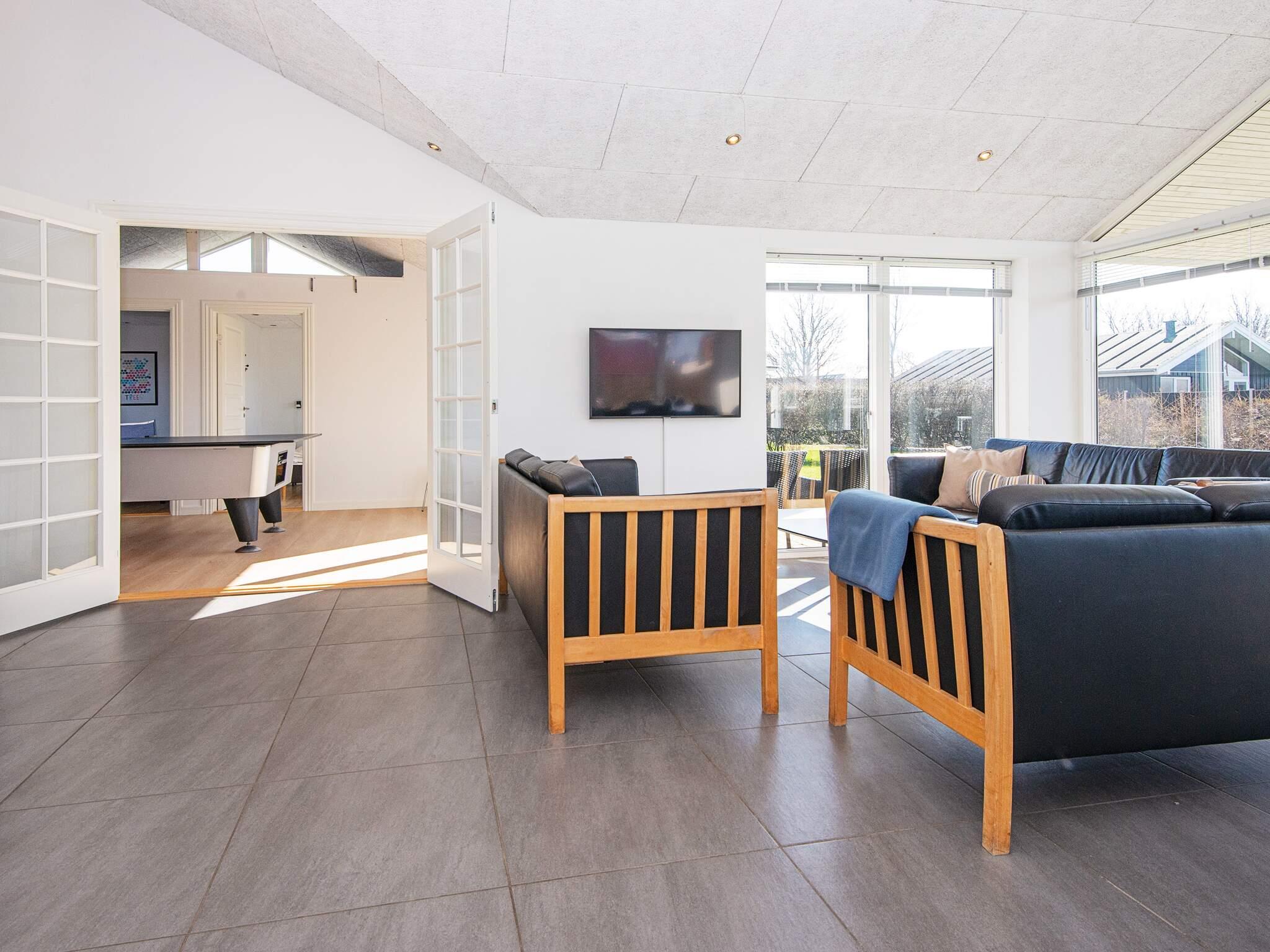 Dette rummelige feriehus i det fredelige sommerhusområde i Høll er et perfekt familievenligt fristed tæt på stranden. Med fem soveværelser, herunder en barneseng og en høj stol til de mindste, er der god plads til større familier eller grupper. Den lyse stue giver adgang til en dejlig terrasse, og det fuldt udstyrede køkken indeholder ovn, køle-fryseskab, mikroovn, opvaskemaskine og meget mere - ideelt til ophold med selvforplejning.
