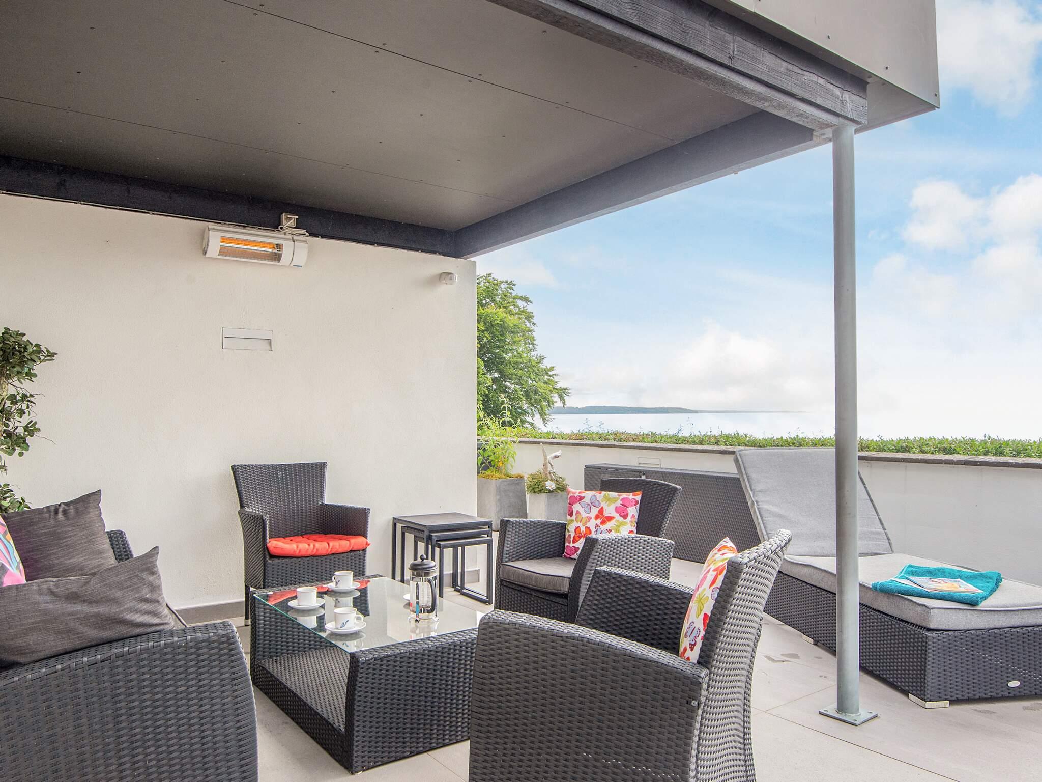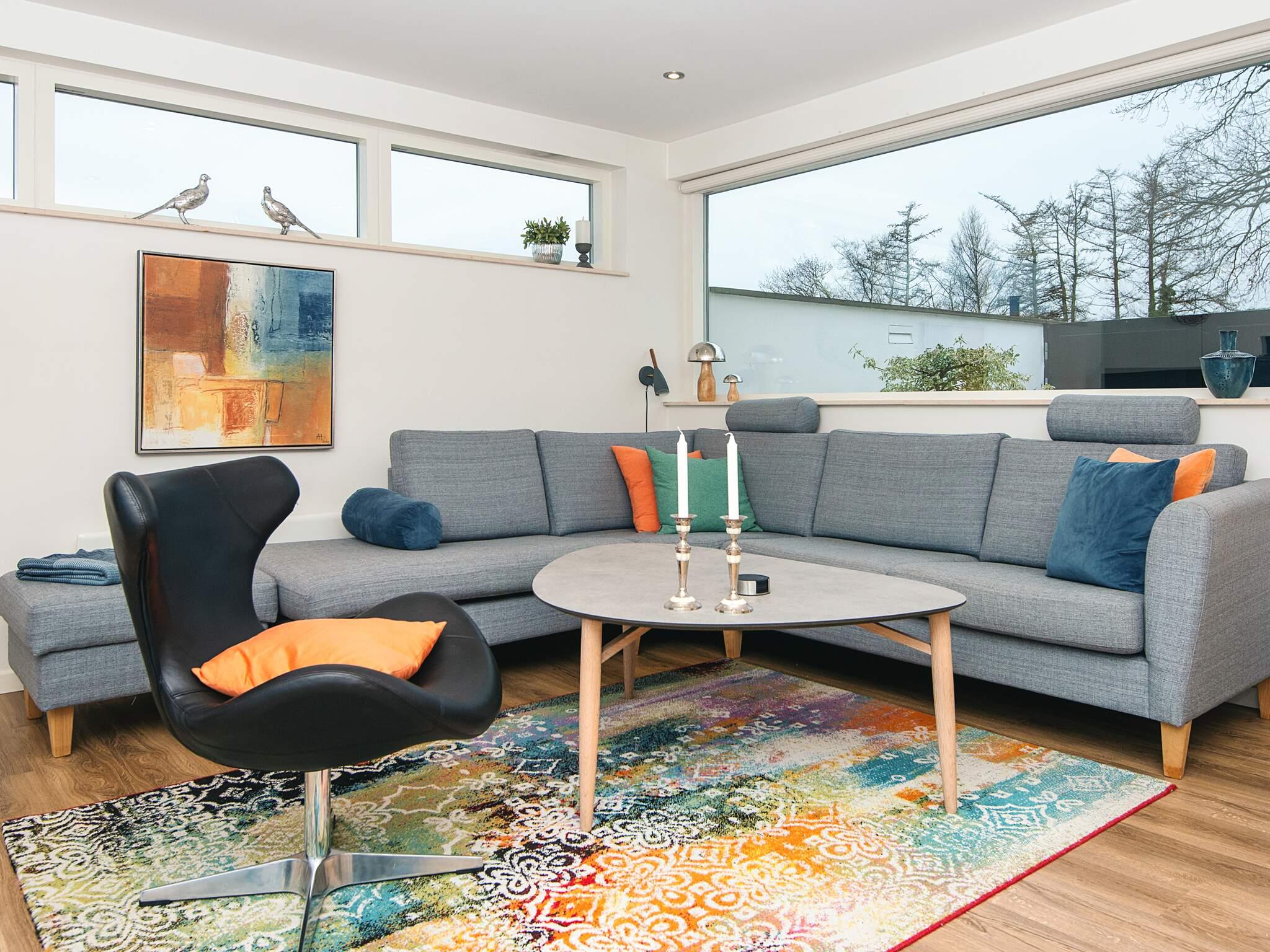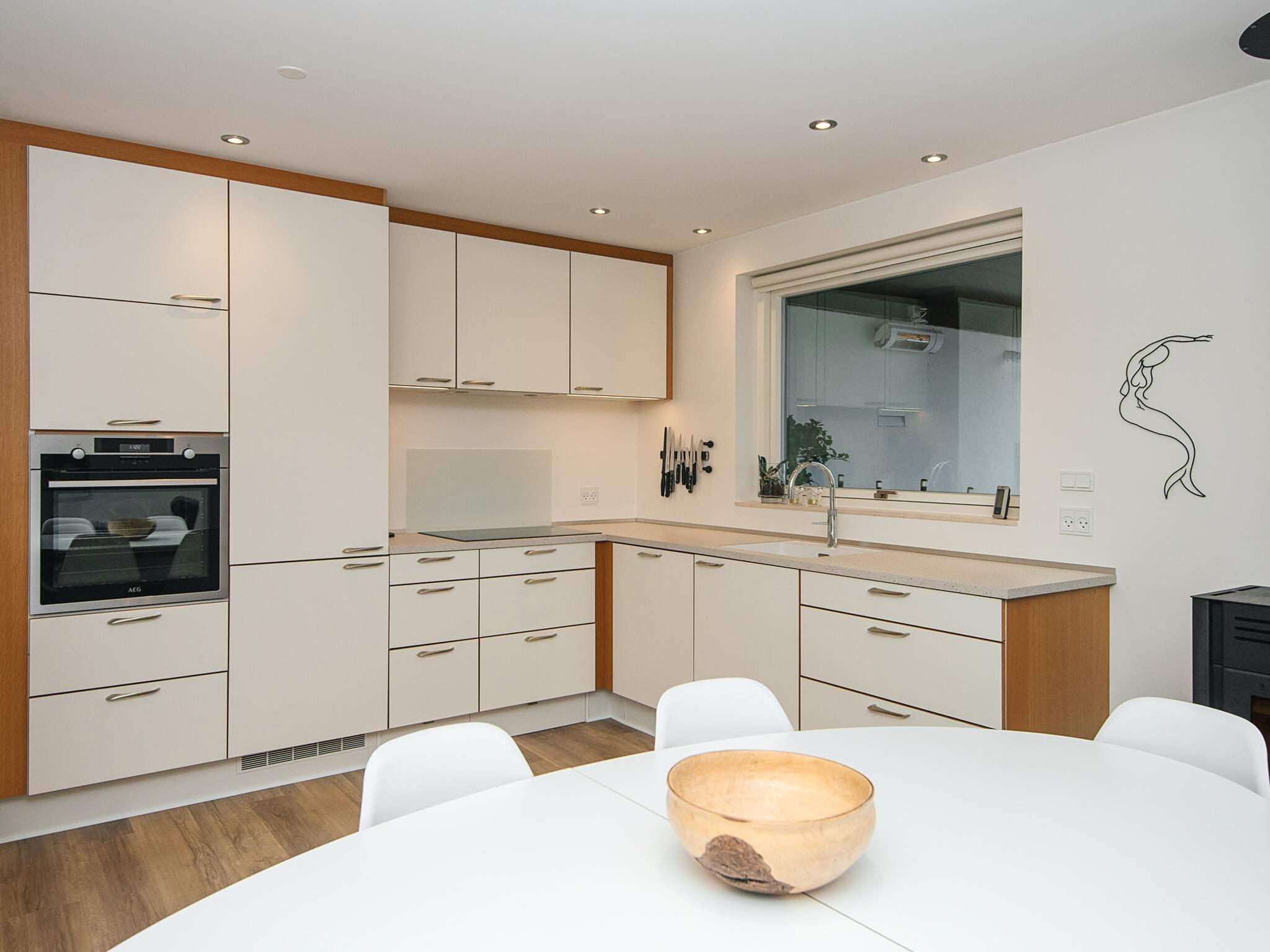 Feriehuset er smagfuldt indrettet med moderne møbler og store vinduespartier, der slipper masser af dagslys ind. Fuldt udstyret køkken med komfur i åben forbindelse til hyggelig stue med brændeovn, tre gode soveværelser med skabe, samt to badeværelser, hvoraf det ene har spabad. Feriehuset er udstyret med alle moderne bekvemmeligheder, og der er selvfølgelig gratis Wi-Fi. Fra alrummet har I direkte udgang til det store udendørsområde med grill og havemøbler, hvor I kan nyde den fantastiske udsigt over Vejle Fjord. Børnevenlig og indhegnet have med plads til boldspil og leg.