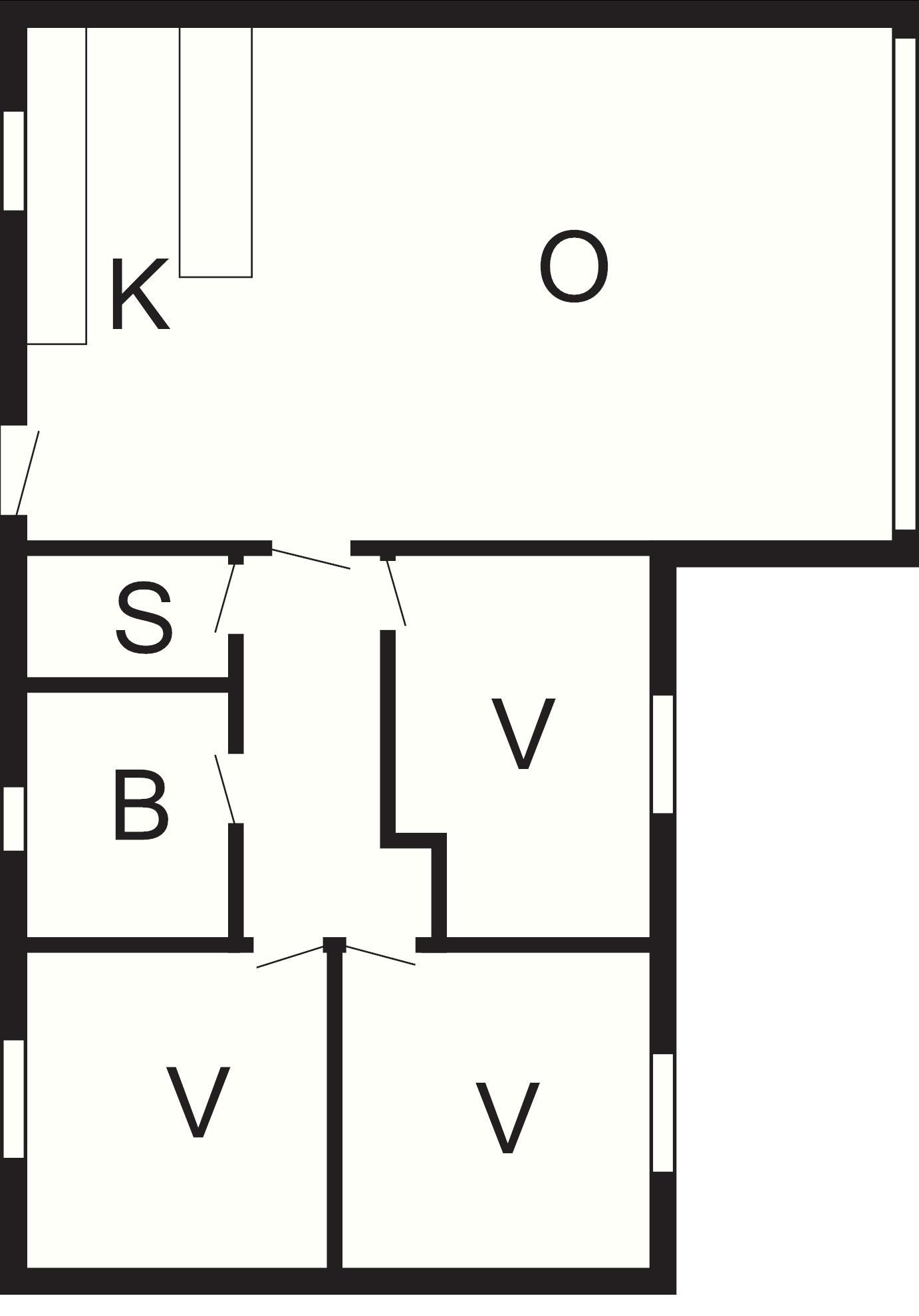 3 Soveværelser: (1DS)+(1DS)+(4K), barneseng