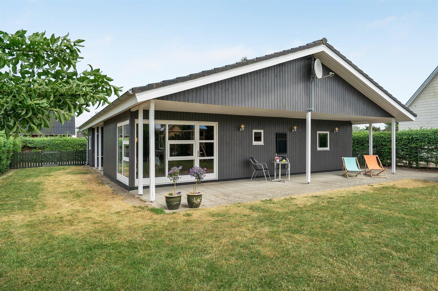 Ferieboligen er beliggende på en 790 m² stor havegrund. Grunden er indhegnet. Der er 350 m til havet. Nærmeste forretning er beliggende i en afstand af 2500 m. Desuden er der 50 m² overdækket terrasse. Gynge. Der er installeret stik til opladning af elbil. Parkering ved ferieboligen.