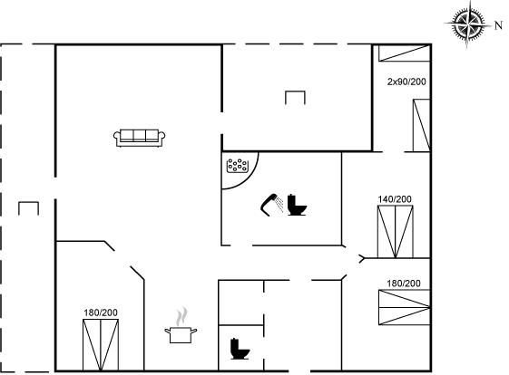 Der er i alt 4 soveværelser. Sovepladserne fordeler sig på: 6 sovepladser i dobbeltsenge. 2 sovepladser i enkeltsenge. Derudover er der 1 stk. barneseng.