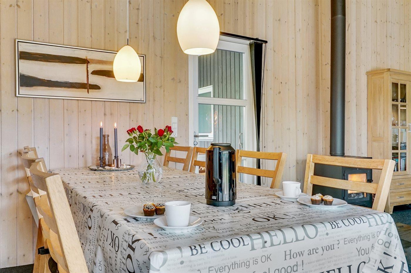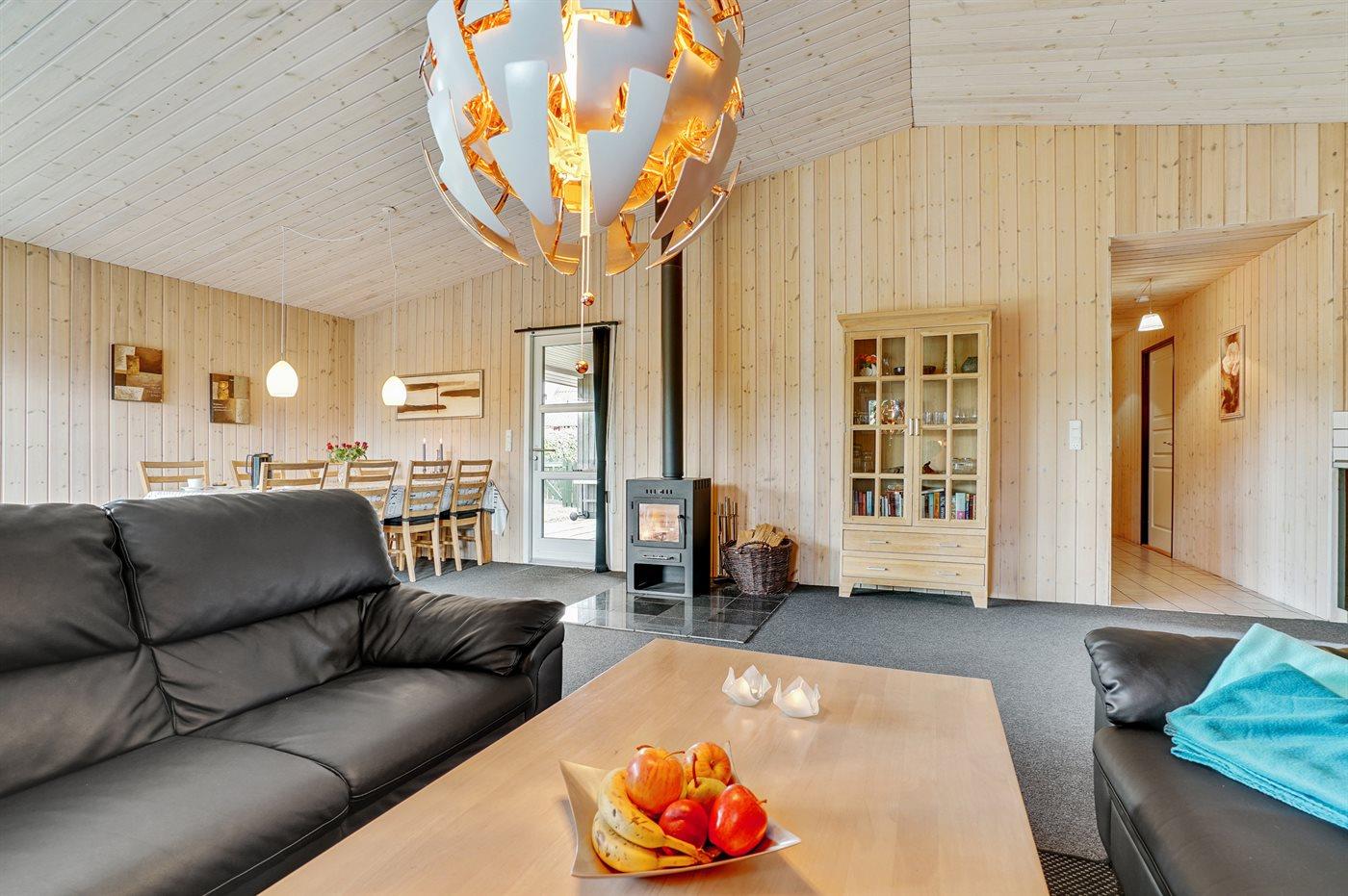 Sommerhuset egner sig til 8 personer samt 1 barn op til 3 år. Ferieboligen er på 119 m² og er bygget i 2008. Det er tilladt at medbringe 2 husdyr. Ferieboligen har vaskemaskine. Tørretumbler. Frysekapacitet på 40 liter. Der er desuden brændeovn. Til de små er der 1 stk. barnestol.