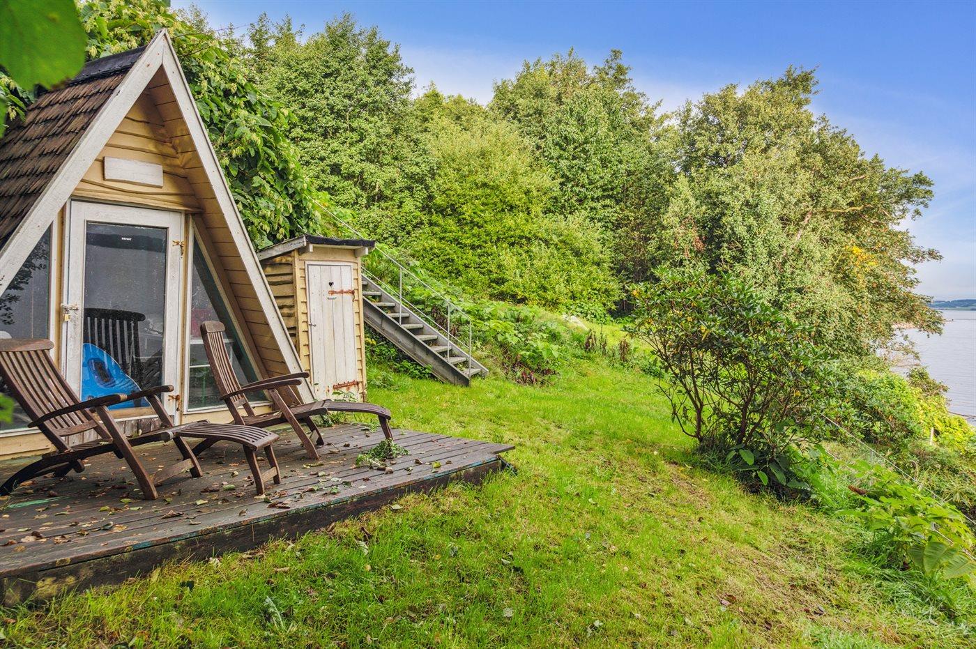 Ferieboligen er beliggende på en 1056 m² stor naturgrund. Der er 10 m til fjorden. Nærmeste forretning er beliggende i en afstand af 1000 m. Der er en golfbane i en afstand af 3500 m. Til ferieboligen hører 20 m² terrasseareal. Desuden er der 2 m² overdækket terrasse. Der er redskabsrum. Gynge. Der ligger en legeplads i en afstand af 500 m. Bålsted. Parkering ved ferieboligen.