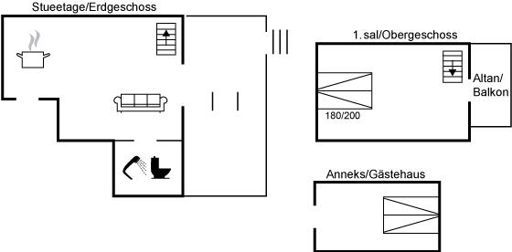 Der er i alt 2 soveværelser. Sovepladserne fordeler sig på: 4 sovepladser i dobbeltsenge. 2 af disse sovepladser befinder sig i et anneks. Derudover er der 1 stk. barneseng.