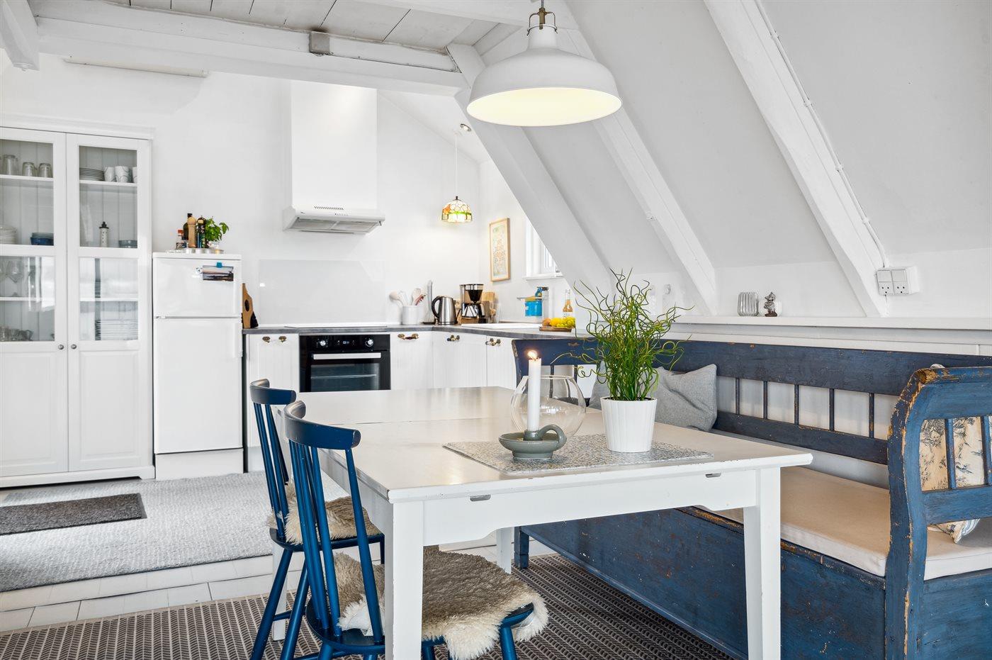 Køkkenet er udstyret med 1 køleskab. Der er 4 induktionskogeplader, varmluftovn samt opvaskemaskine.