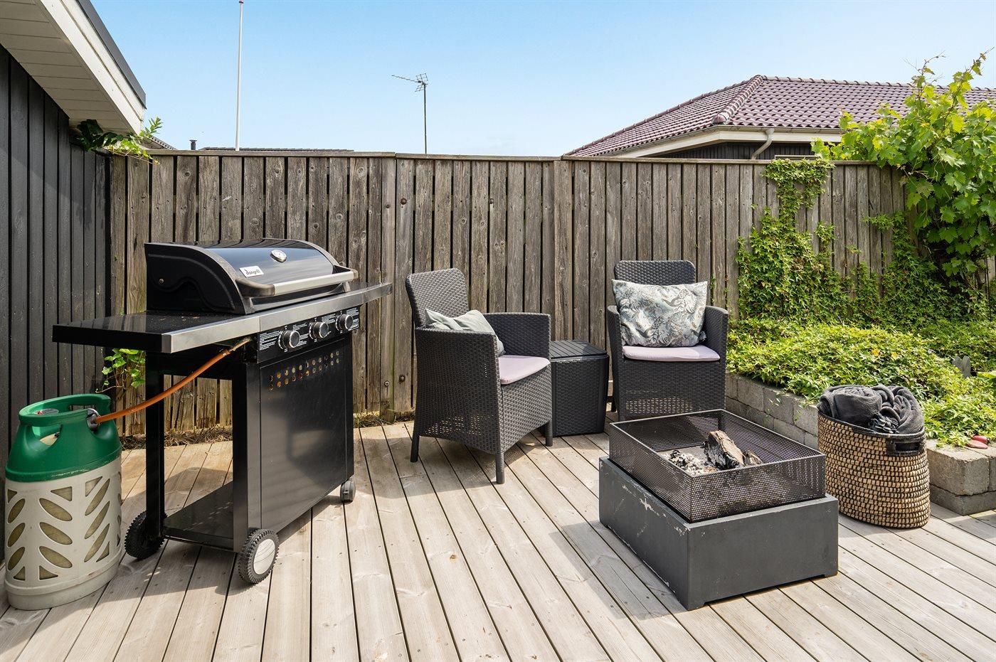 Ferieboligen er beliggende på en 396 m² stor havegrund. Der er 100 m til havet. Nærmeste forretning er beliggende i en afstand af 2000 m. Til ferieboligen hører 50 m² terrasseareal. Desuden er der 20 m² overdækket terrasse. Lille Bålsted. Der er installeret stik til opladning af elbil. Parkering ved ferieboligen.