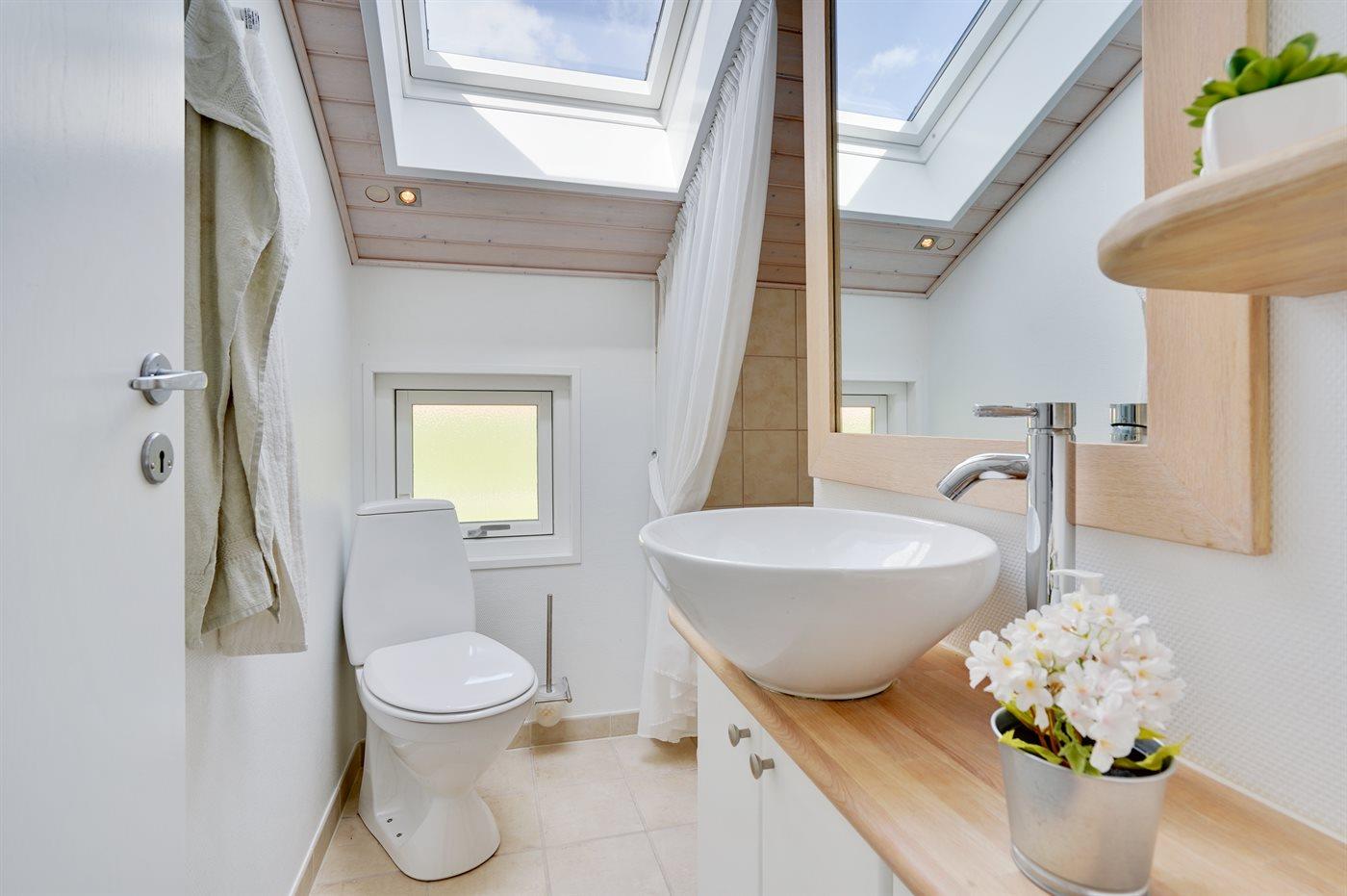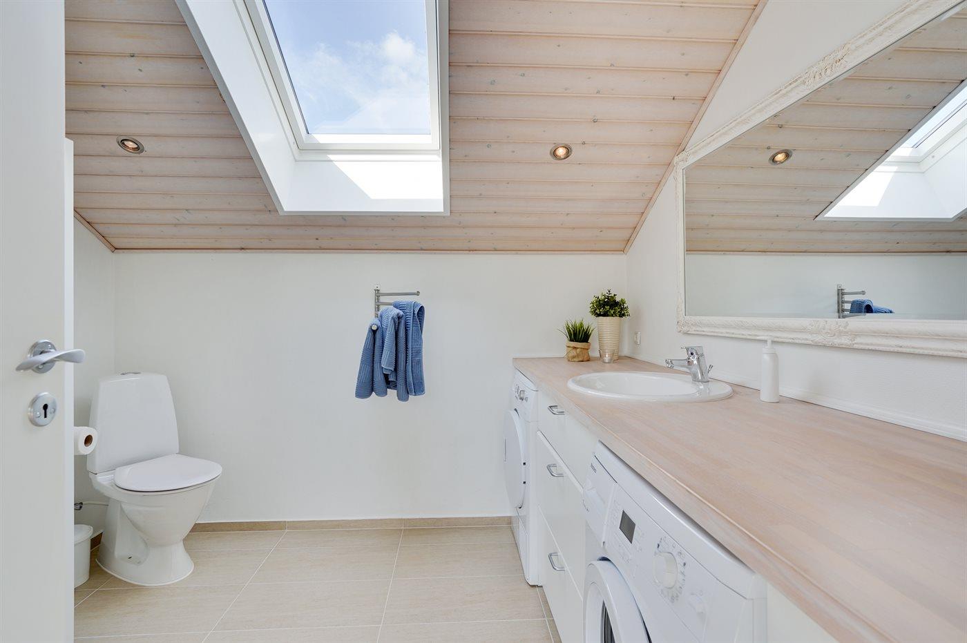 Der er 2 badeværelser med bruseniche og 2 toiletter. Der er gulvvarme på 2 badeværelser.